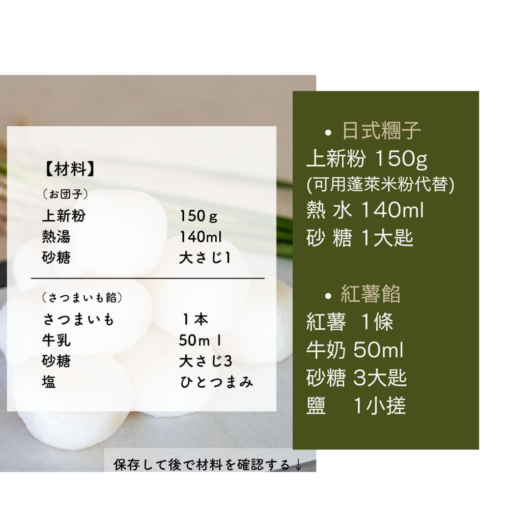 以日式糰子與整顆紅薯壓成的「紅薯餡」。