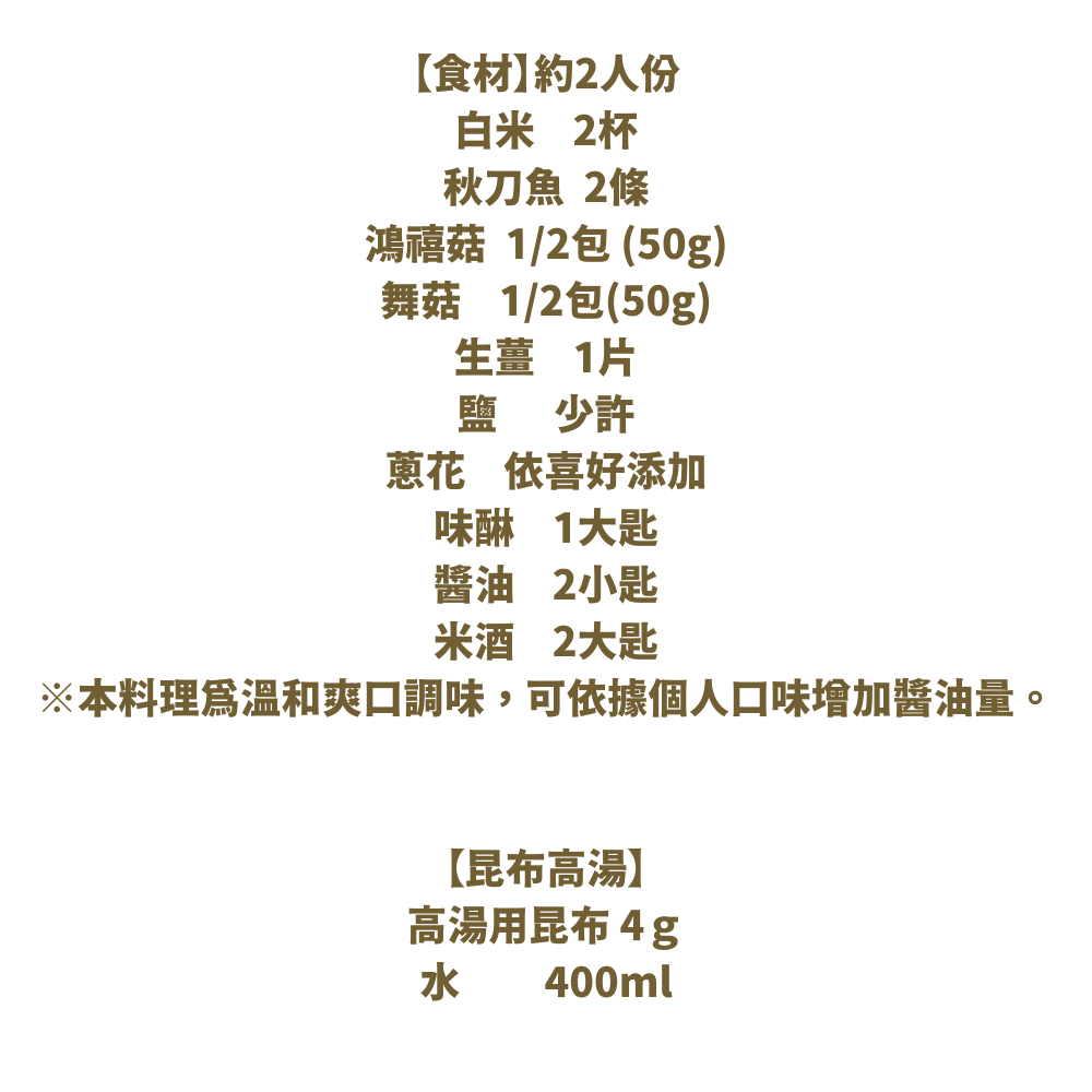 ※本料理為溫和爽口調味,可依據個人口味增加醬油量。