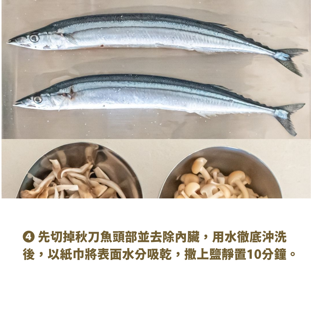 ❻ 把秋刀魚放入烤盤,烤至兩面皆有烤痕。