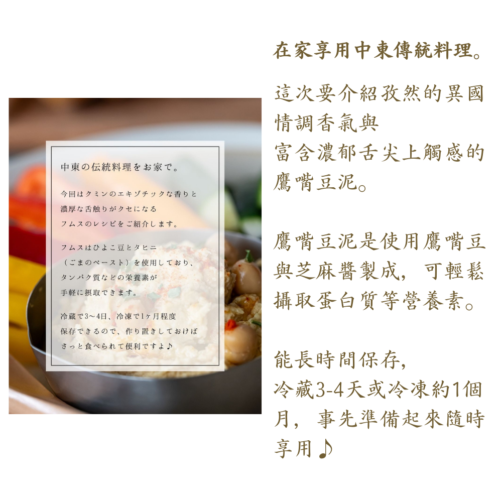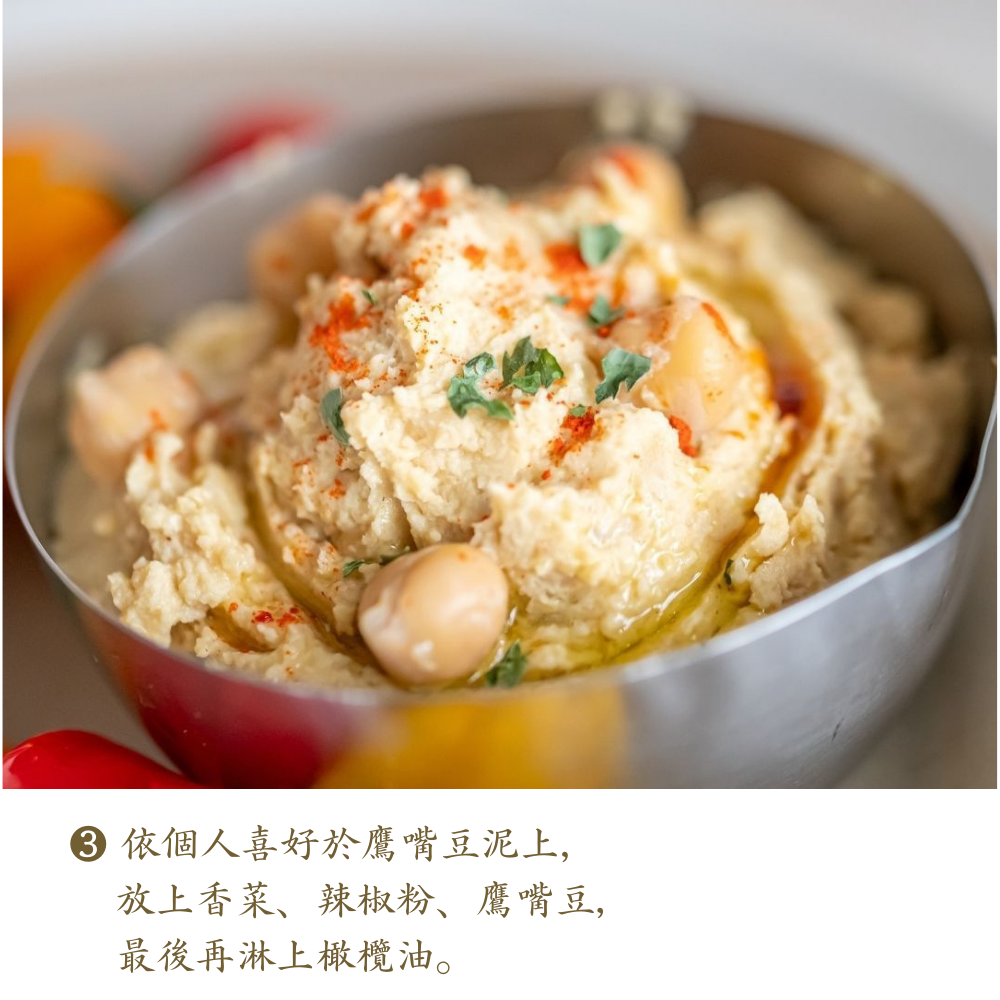 富含濃郁舌尖上觸感的鷹嘴豆泥。