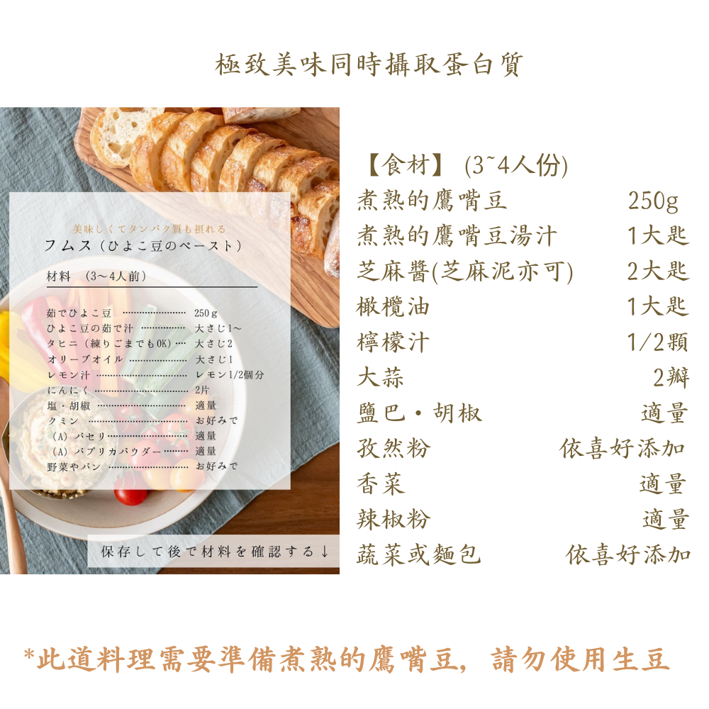 鷹嘴豆泥是使用鷹嘴豆與芝麻醬製成,可輕鬆攝取蛋白質等營養素。
