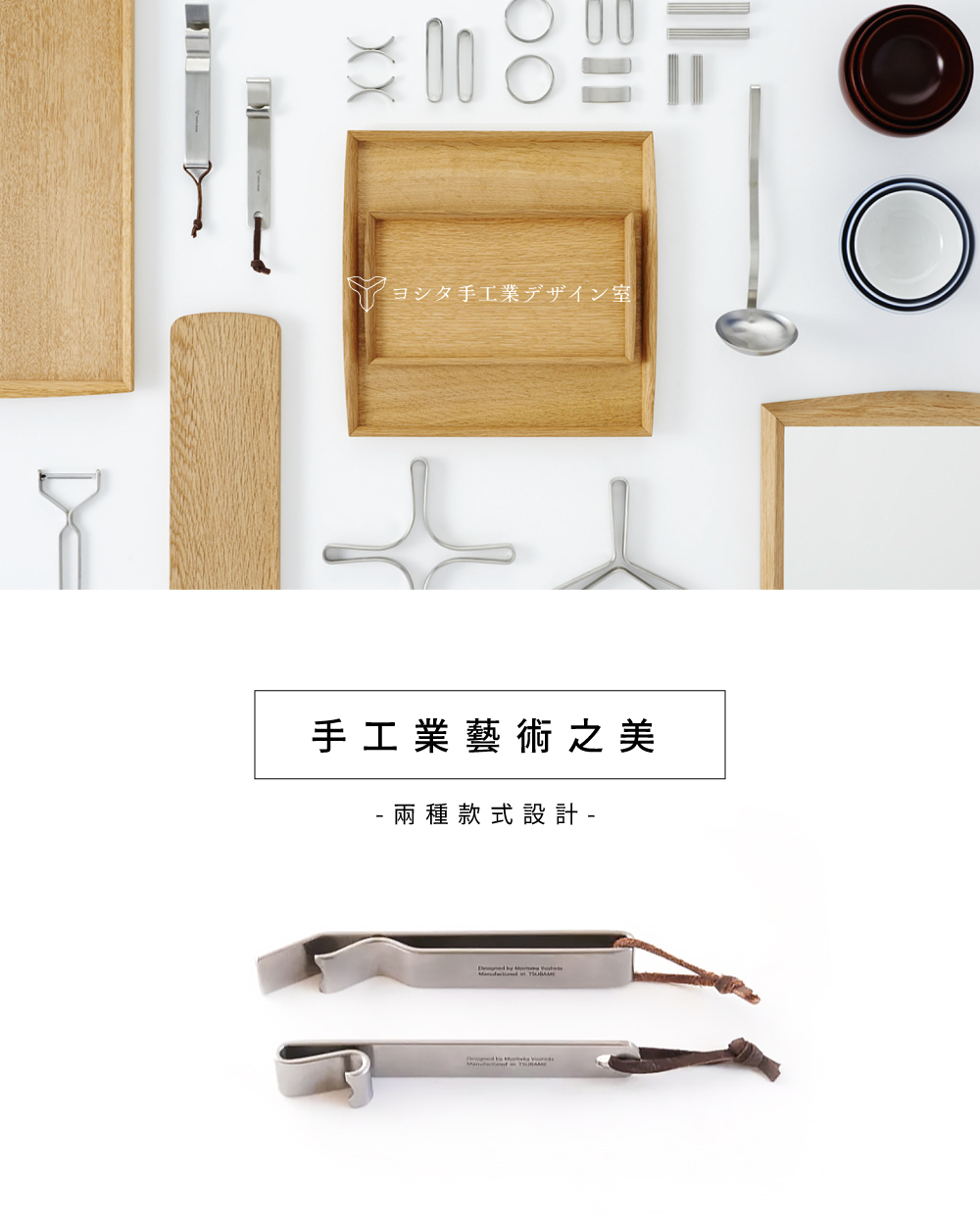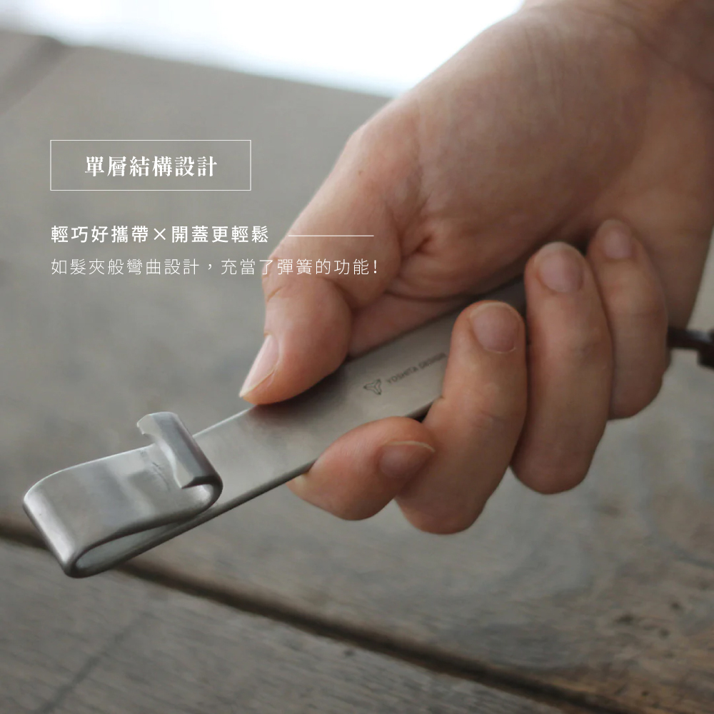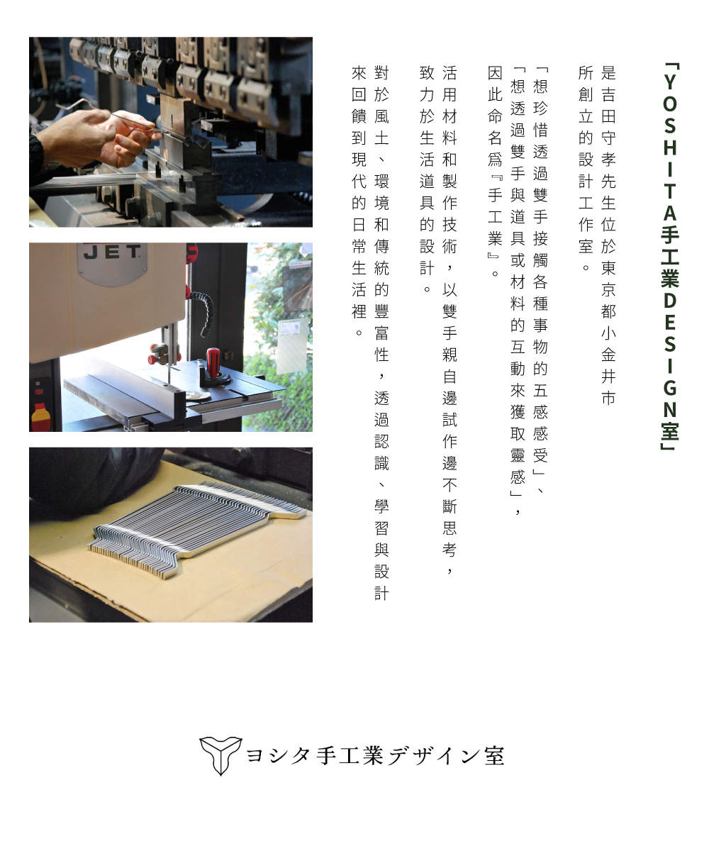 ●整體經過細緻的的髮絲紋面加工打造出優美外型,握柄背面還用小字體印有YOSHITA DESIGN的品牌標誌。