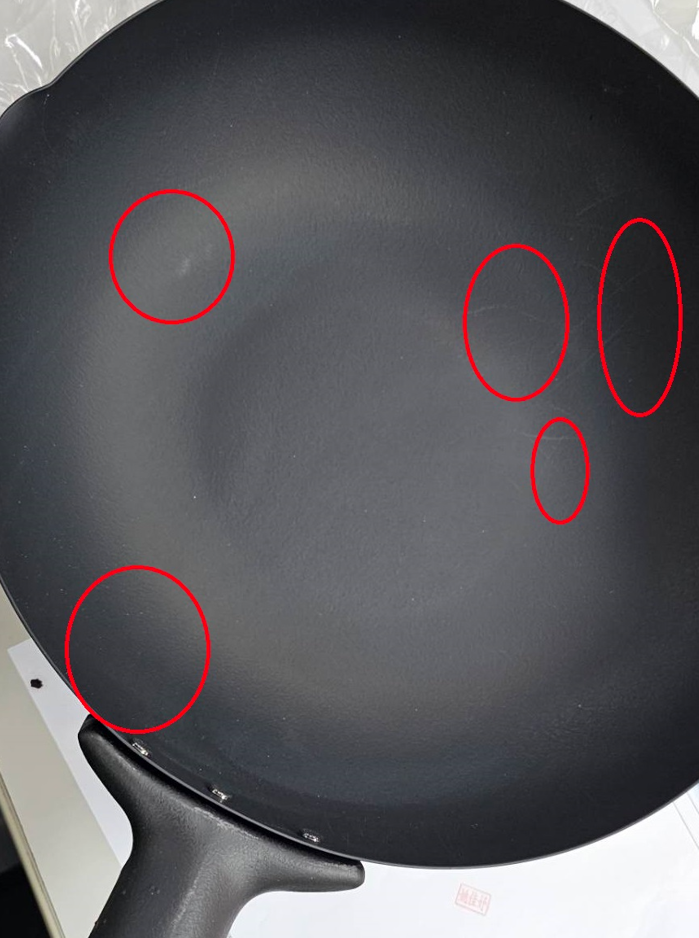瑕疵情況:本商品全新商品,鐵鍋鍋面/鍋底手柄處有明顯痕跡,手柄連結處有微生鏽,需要重新清洗開鍋即可正常使用。理解鐵鍋特性者再行下單