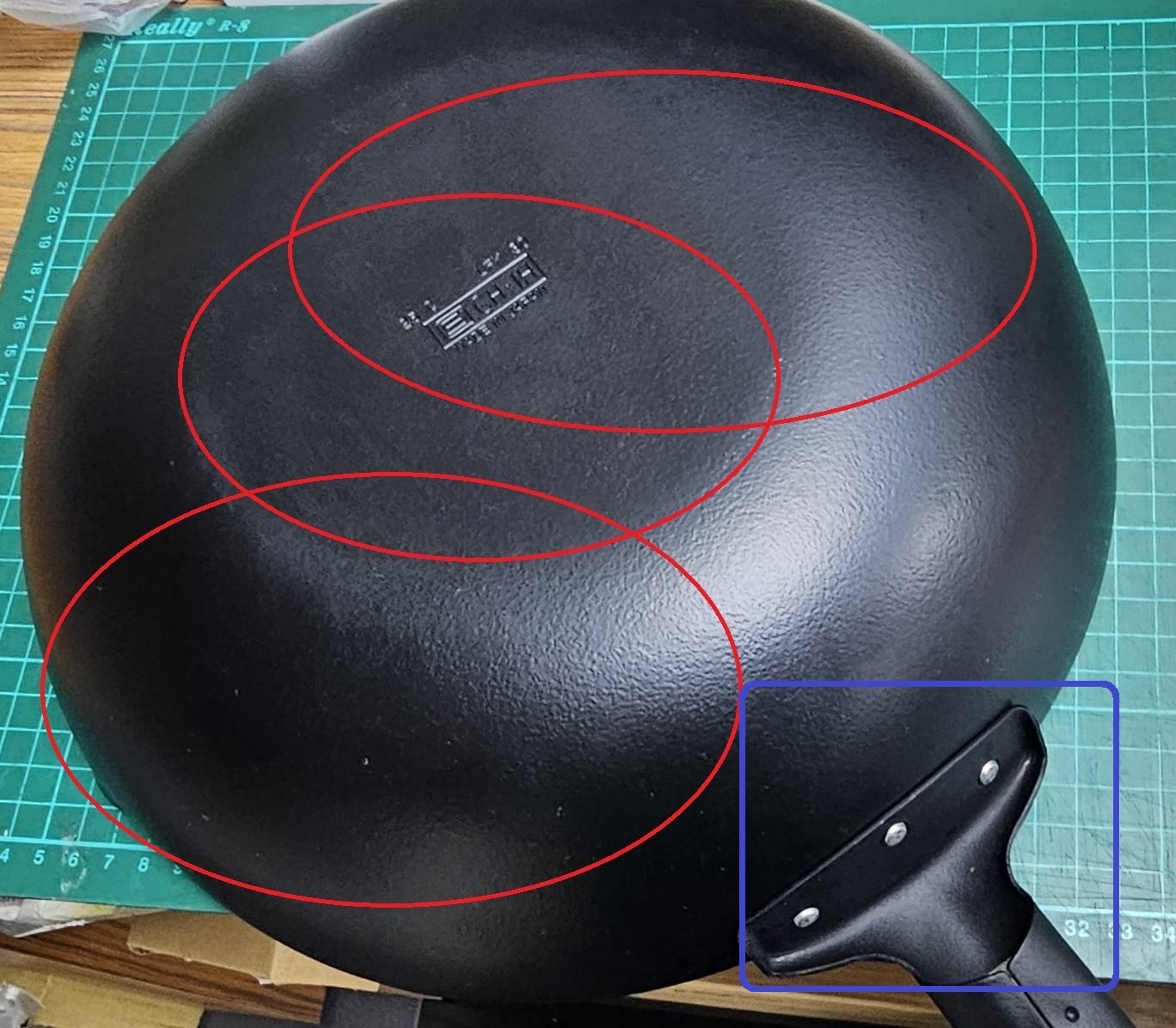 A:鐵鍋本身因為會氧化(生鏽)的關係,所以出廠的時一定會做鐵鍋防氧化的處理。早期的鐵鍋大部分都是在出廠後塗上防鏽油以防止鐵鍋生鏽,但這樣的技法在消費者使用前需要自行用火空燒燒除,也是最原始的鐵鍋開鍋方法。
