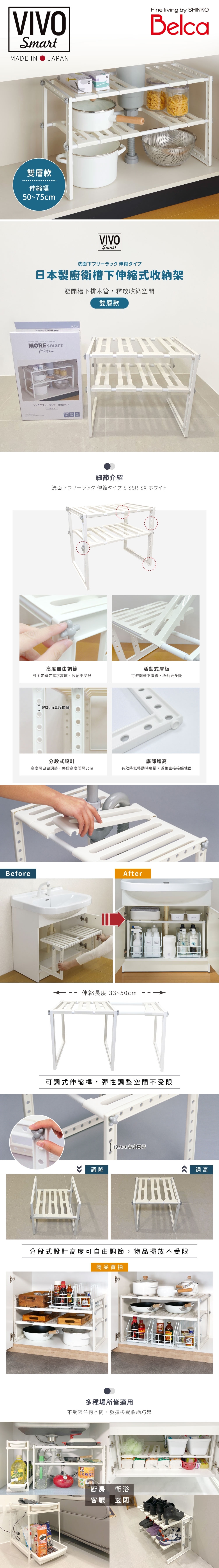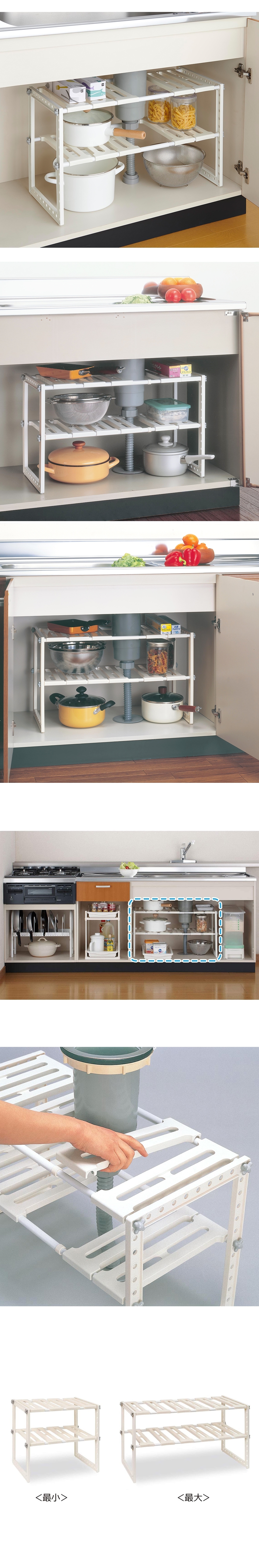 可配合家中水槽下空間調整使用,可將鍋具、平底鍋或調理用過濾網等廚房用品完整收納的伸縮式收納架。