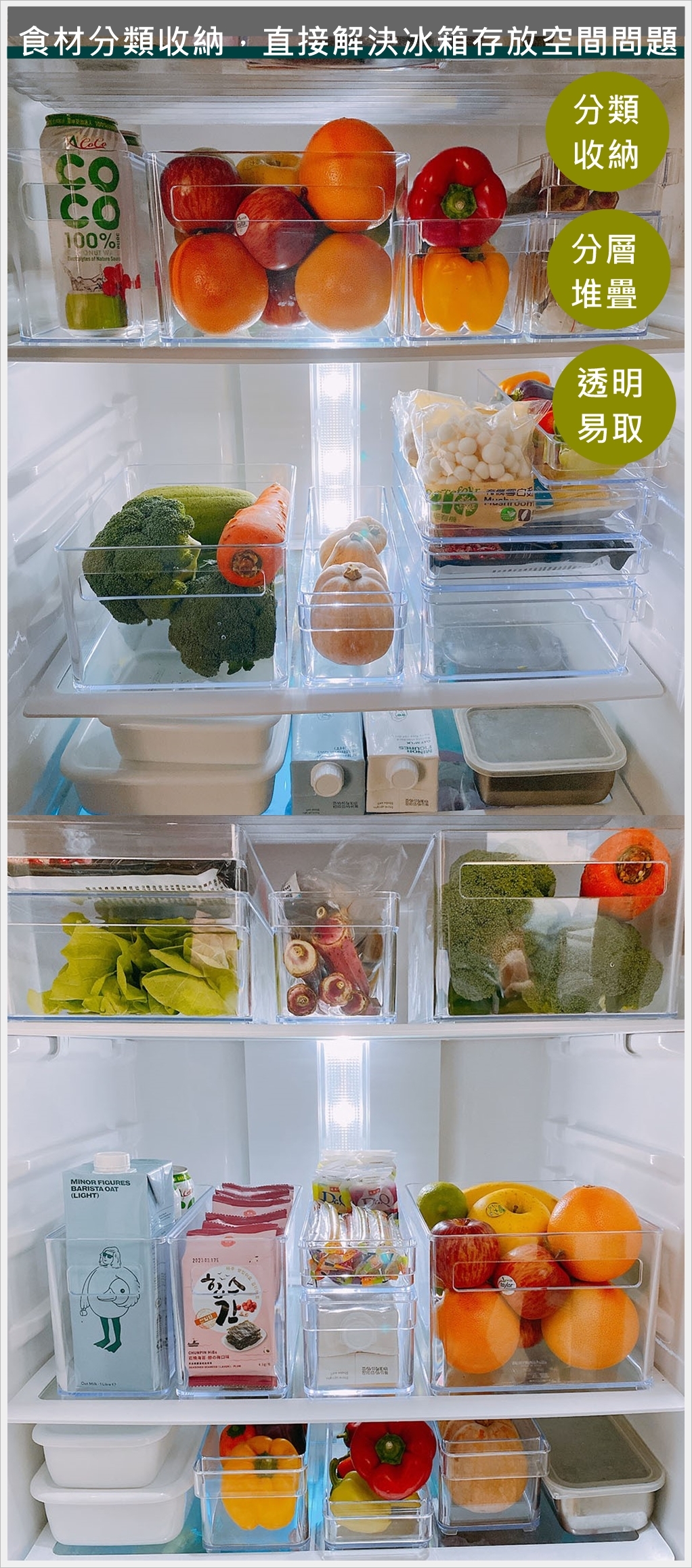 食材分類收納,直接解決冰箱存放空間問題。