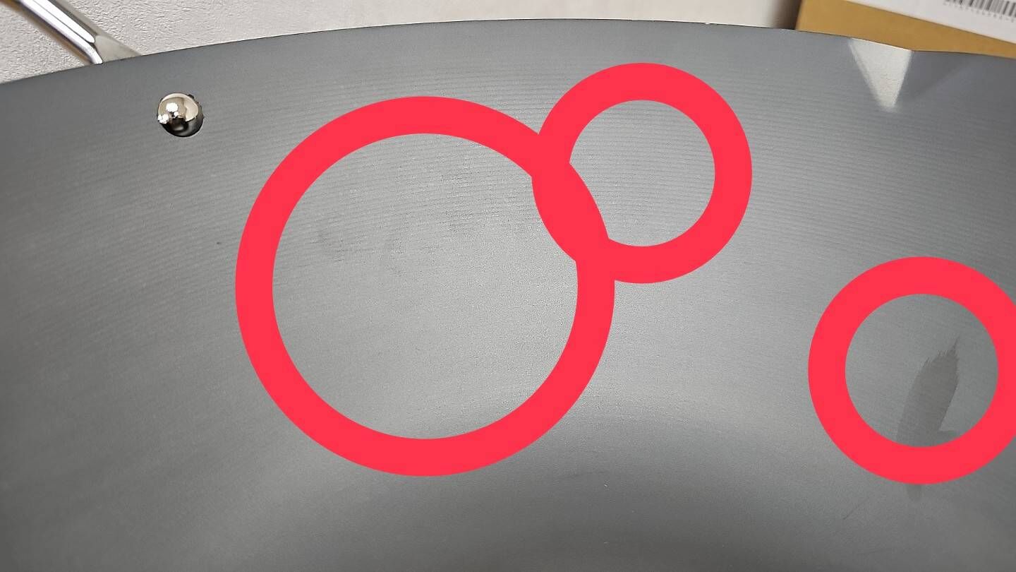 瑕疵情況:本商品為全新商品,鐵鍋內外處皆有深淺不明痕跡,清洗開鍋可以正常使用。