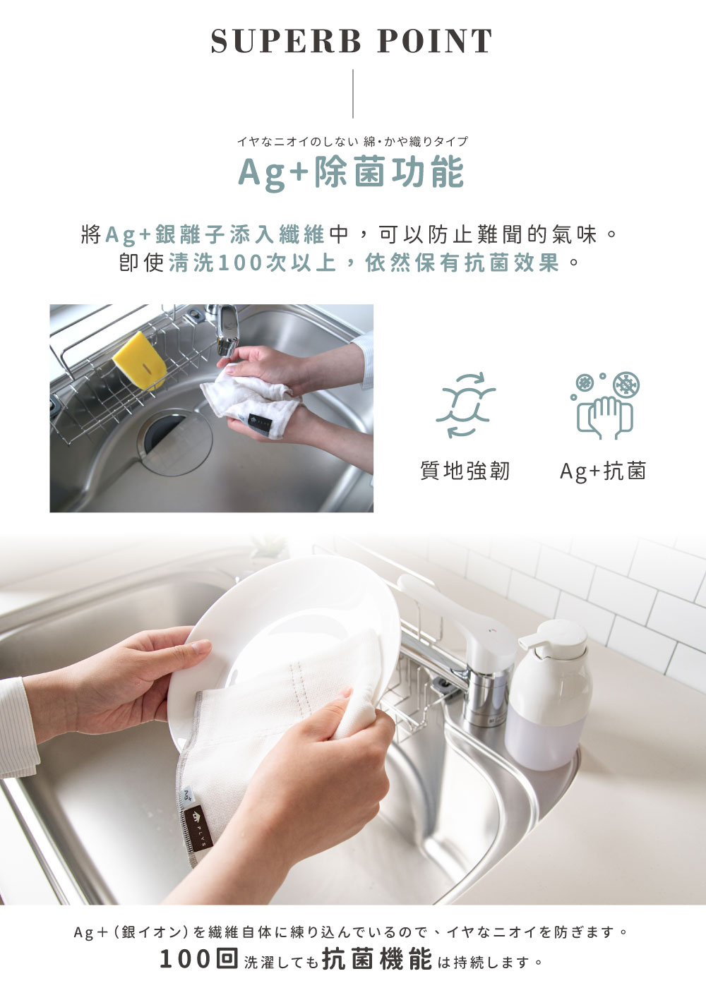以Ag+銀離子的作用,有效抑制細菌孳生的萬用抹布!