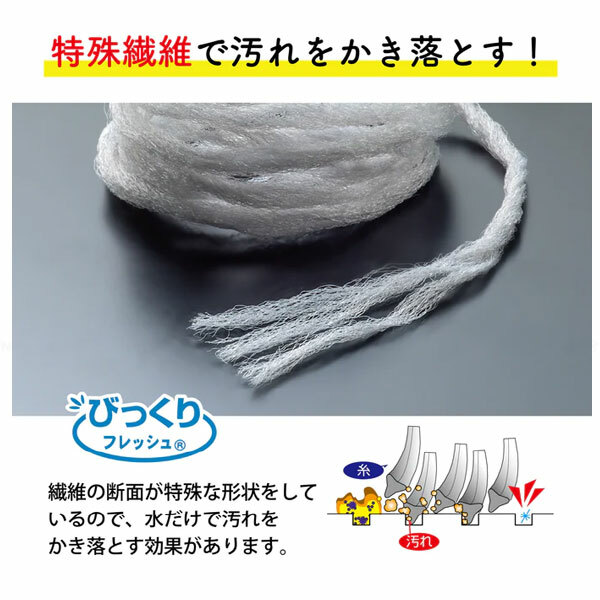 ●採用特殊三角形狀纖維,以清水浸濕即可去除污垢,以纖維清潔故不傷表面。