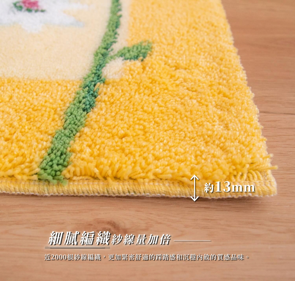 每一張地墊使用約1500至2000根的紗線編織完成,是一般傳統地墊還要多幾倍的紗線量,因此保有更加緊密舒適的踩踏感和沉穩內斂的質感品味。