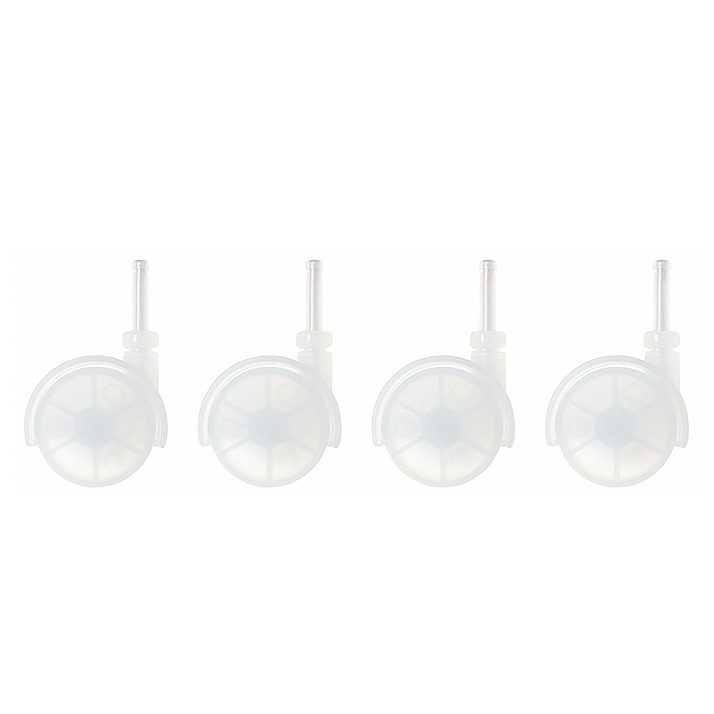 ●將滾輪穩固安裝於收納箱底部的四個角孔中。