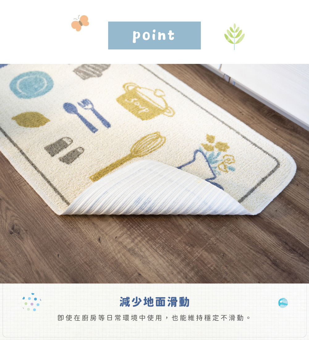 ●背面止滑加工,即使在廚房走動也不易移位,安全更有保障。
