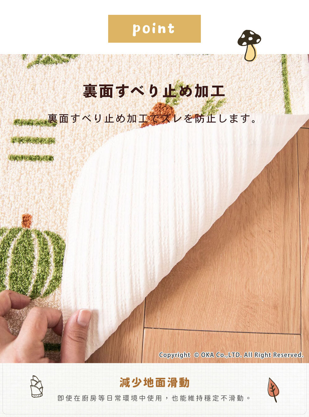 如同田園般整齊排列的蔬菜圖案設計,讓人感到溫暖舒適的廚房地墊。