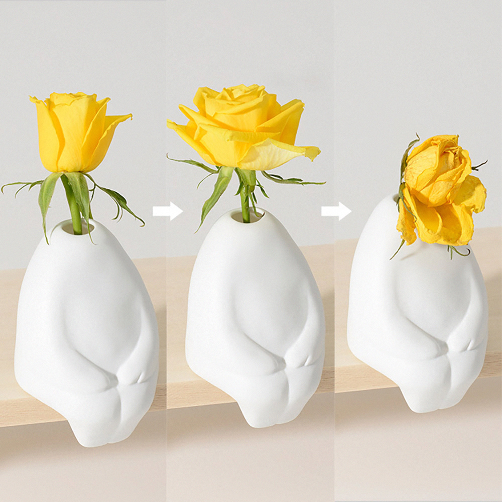 純白樸素的花器與鮮豔花朵結合,真實記錄花朵生命力的每瞬間。