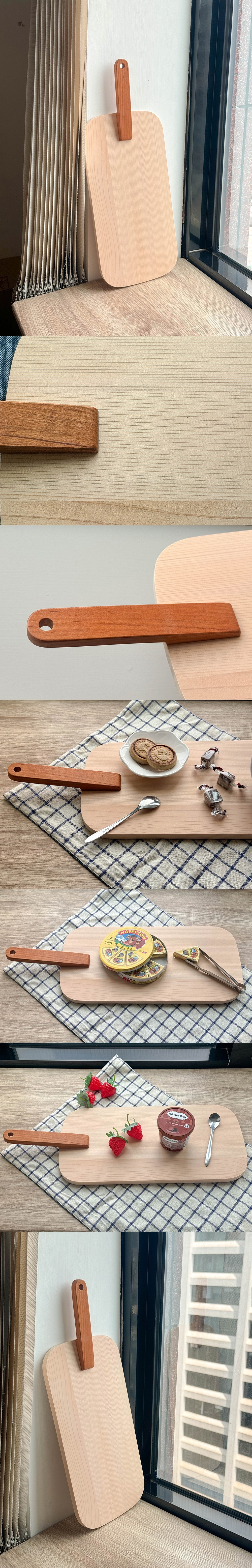 ●砧板選用重量輕且耐水性強的「花柏木」,把手則使用來自日本中津川的「山櫻木」。