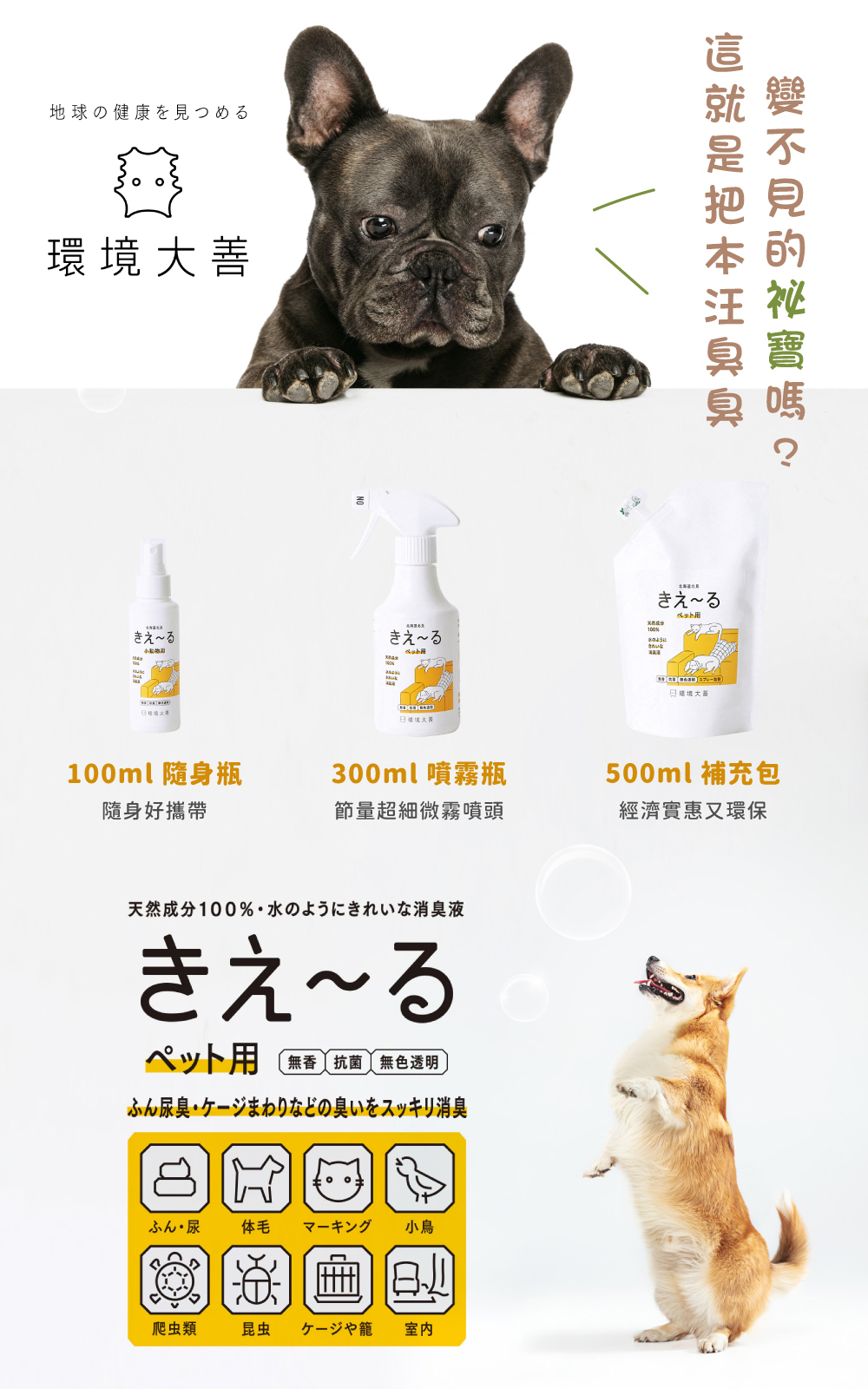 100%天然成分製成的除臭液,溫和安全、不含任何酒精與化學物質,即使寶貝寵物喝下去也安心・無害。除了寵物狗便盆、貓砂墊或寵物睡墊,連毛小孩的體味與小夥伴玩偶也可消臭。以最天然的方式呵護毛小孩,從根源有效去除異味。