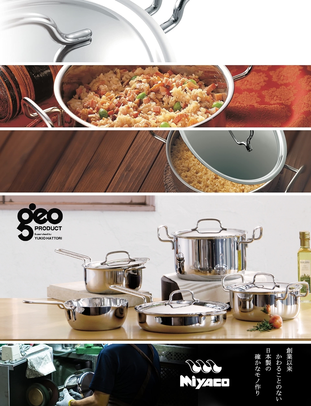 每一個由宮崎製作所細心製作而成的geo商品,藉著熟練的職人進行嚴格的檢品作業,都有著一鍋用15年,一家三代皆可用的絕對信心。