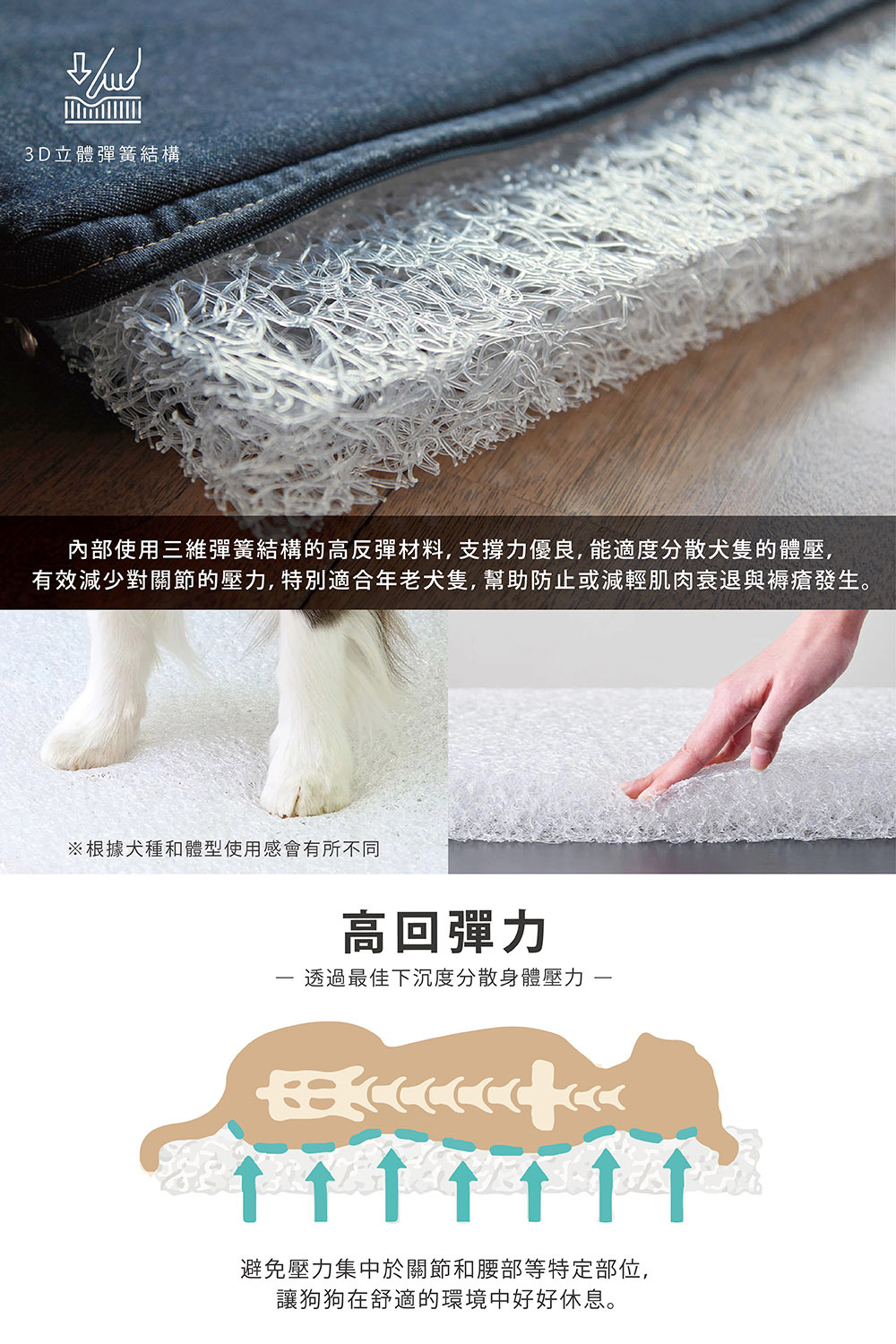 ●透過最佳的下沉度適度分散身體壓力,有助於預防和緩解肌力衰退的老年狗狗的褥瘡發生。