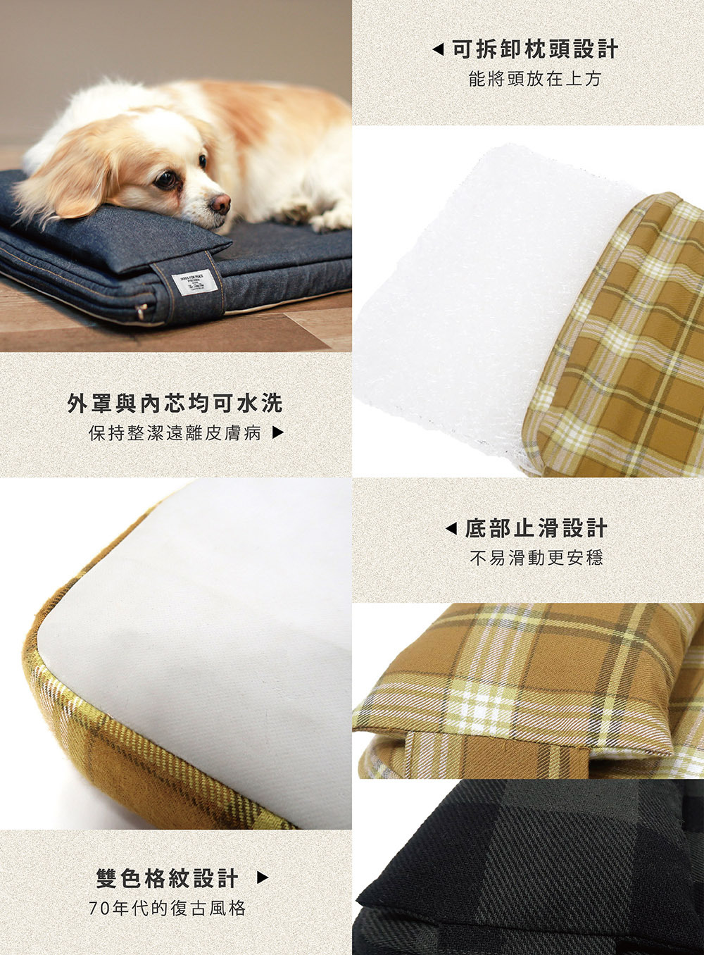 ●有三種尺寸可供選擇,小枕頭拆下來可當寵物下顎靠枕處。
