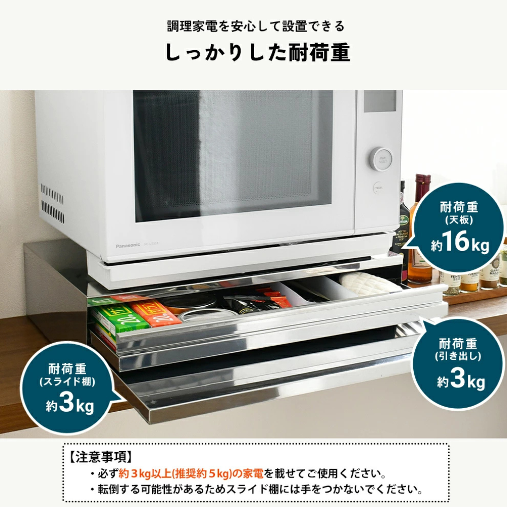 ●置放於微波爐、電鍋下方,可在必要時提供最即時的作業空間。