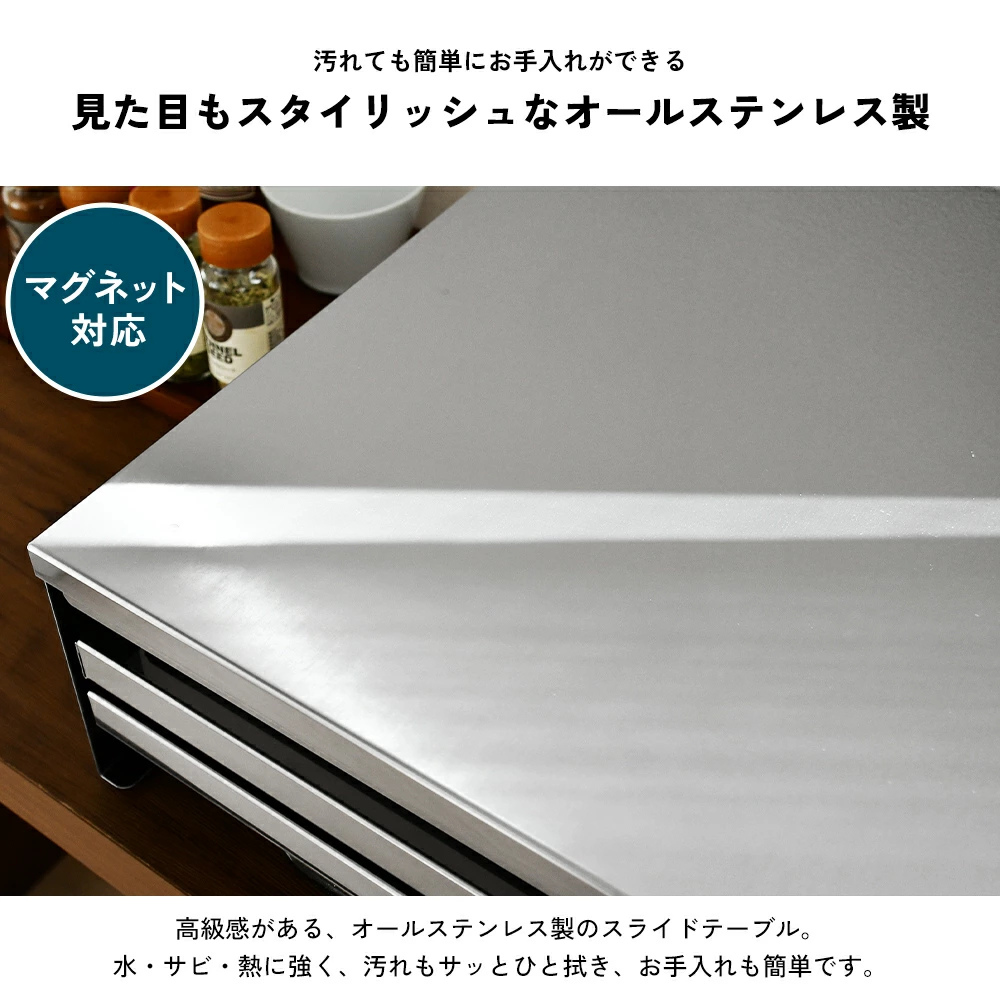 Made in Japan來自日本高品質製造,全不鏽鋼的俐落外觀兼具高機能性,搭配高級家電擺放,讓工作台與廚房融合一體瞬間提升氛圍感。