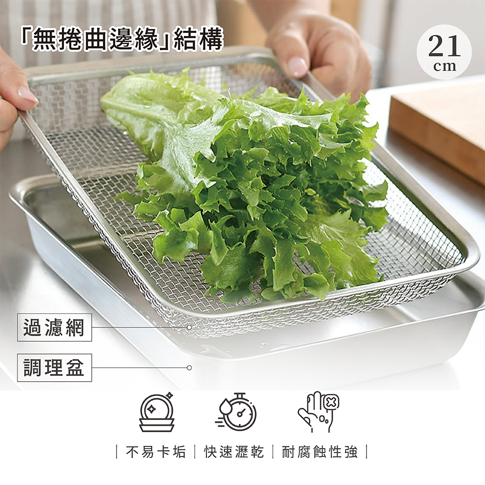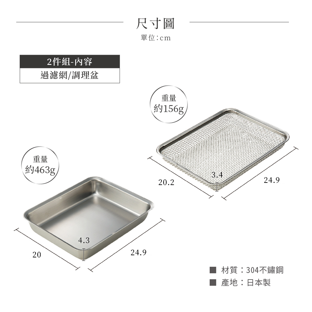 《la base有元葉子》日本製304霧面不鏽鋼長型無捲邊過濾調理盆組