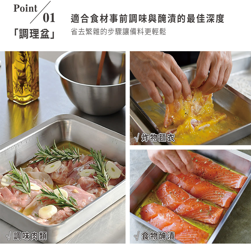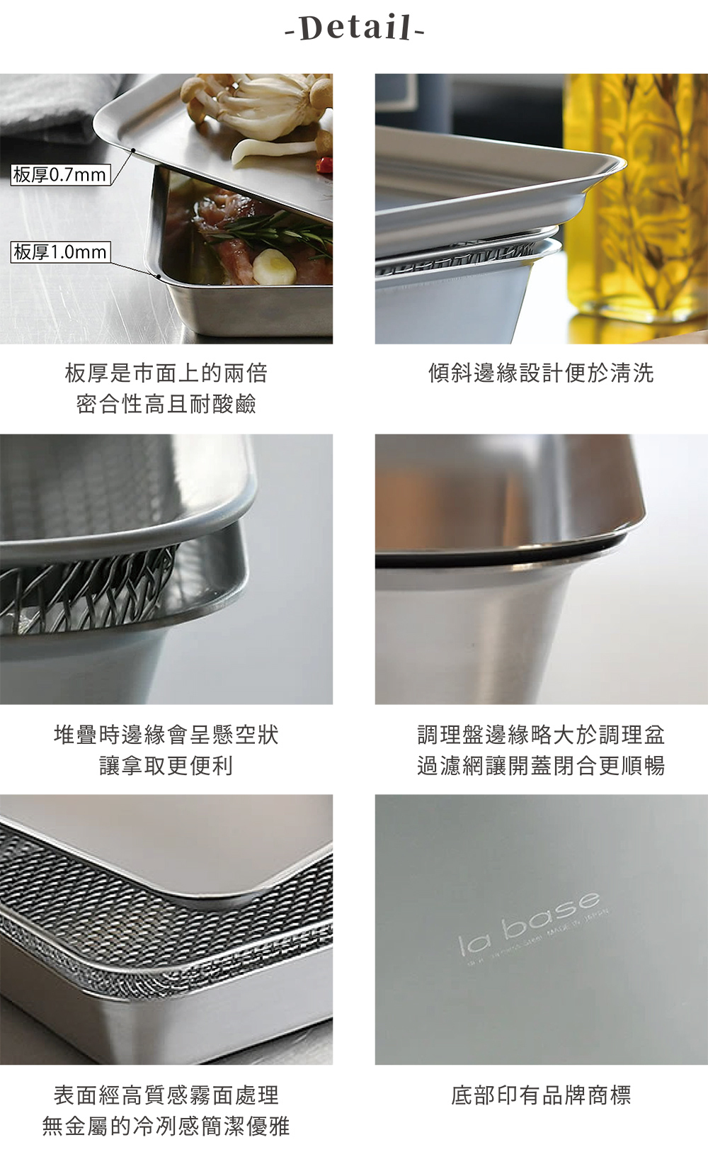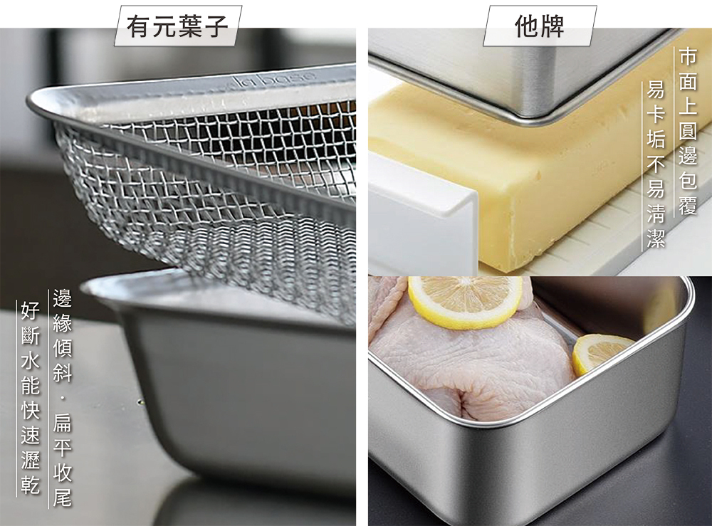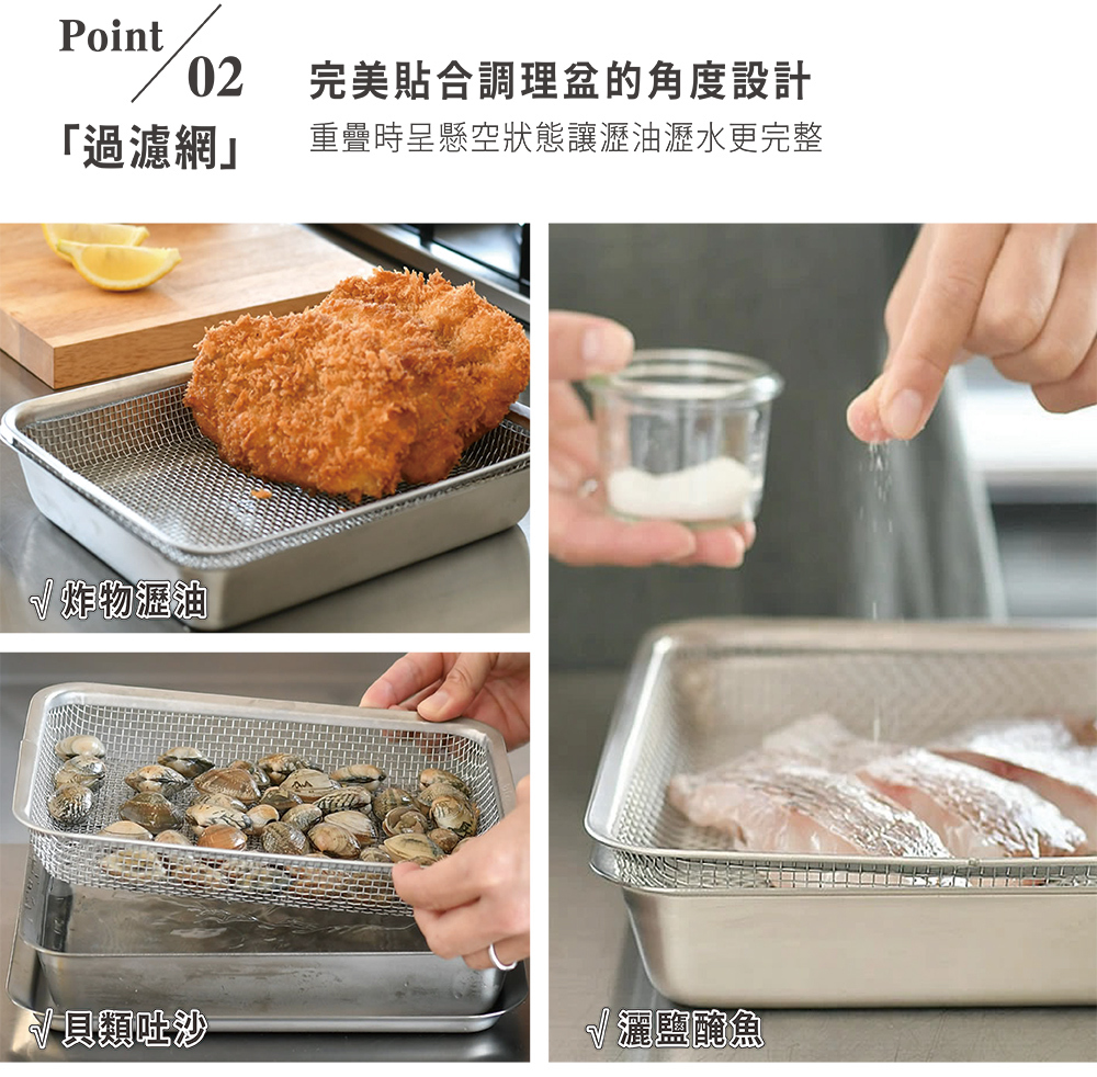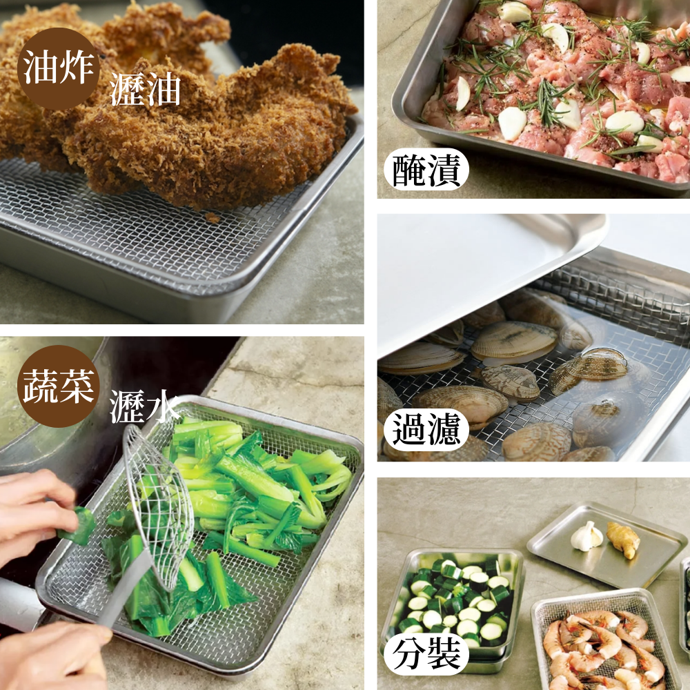 《la base有元葉子》日本製304霧面不鏽鋼長型無捲邊過濾調理盆組