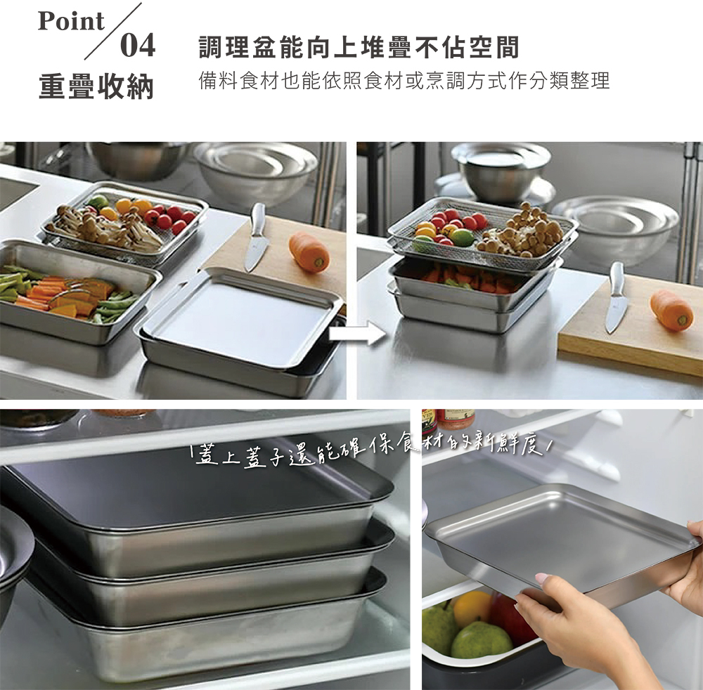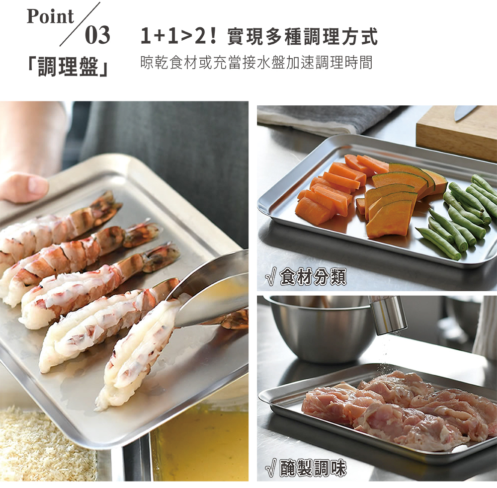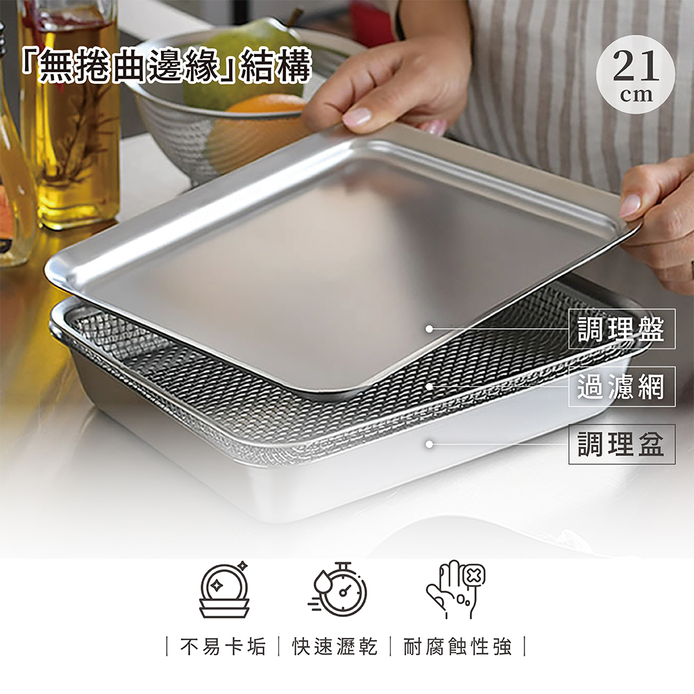 淺盤與過濾網一同使用可以進行蔬果瀝水