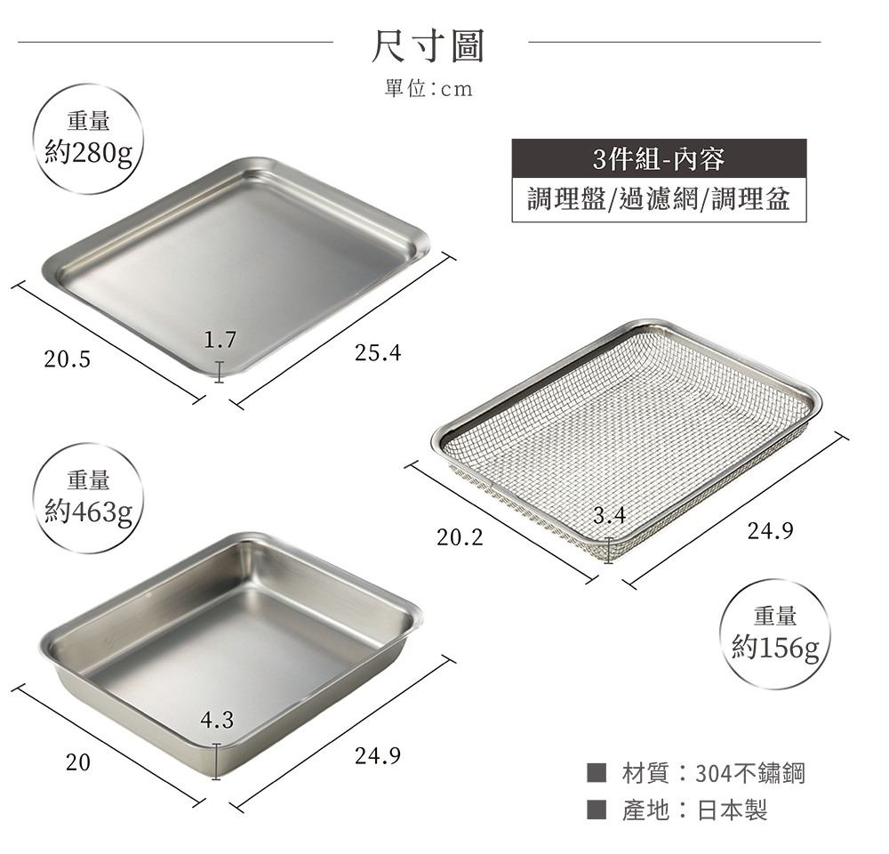 本商品內含:過濾網X1、 深型調理盤X1、淺盤(蓋)X1。
