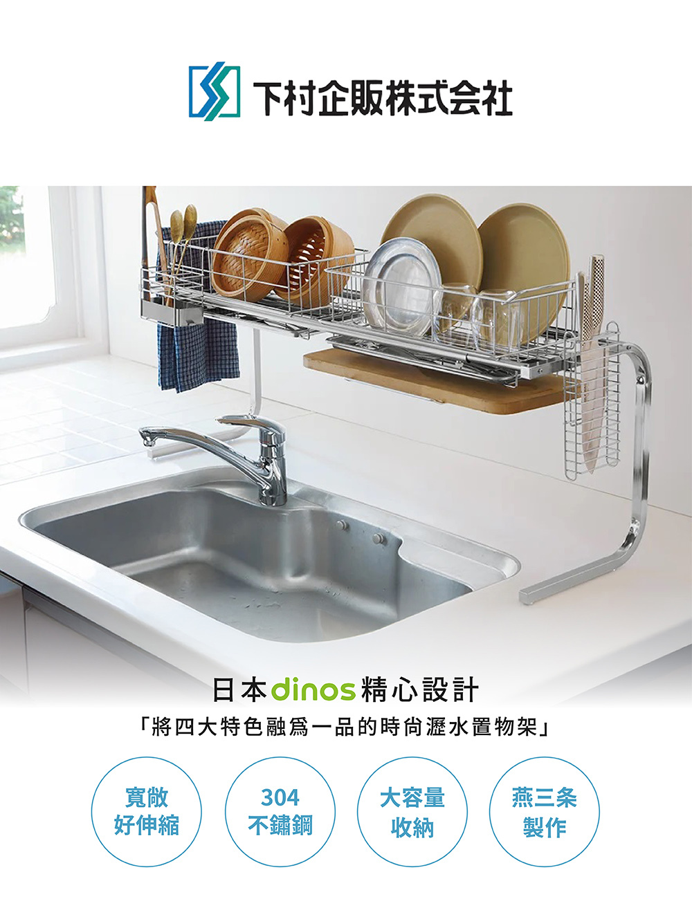 由日本dinos公司精心設計,將四大特色融為一品的時尚瀝水置物架。