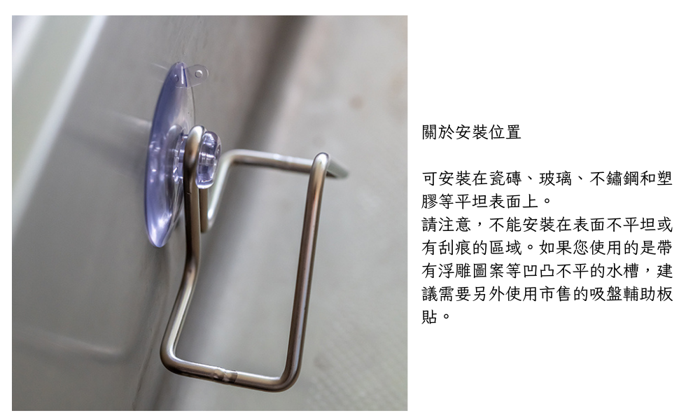 ■使用吸盤於水槽中安裝後,可直接將瀝出的水流入水槽,節省整理時間。