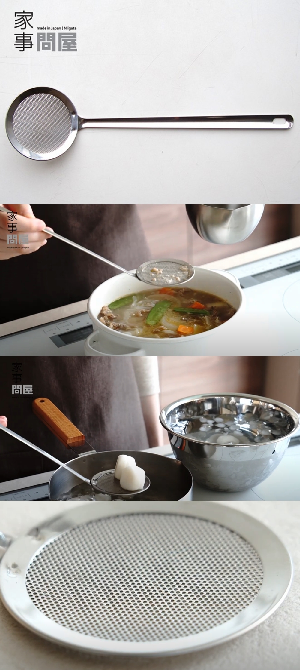 ■多功能不鏽鋼撈網勺,不論烹調燉煮、火鍋料理、過濾湯汁或撈油脂雜質等皆可完全撈起。