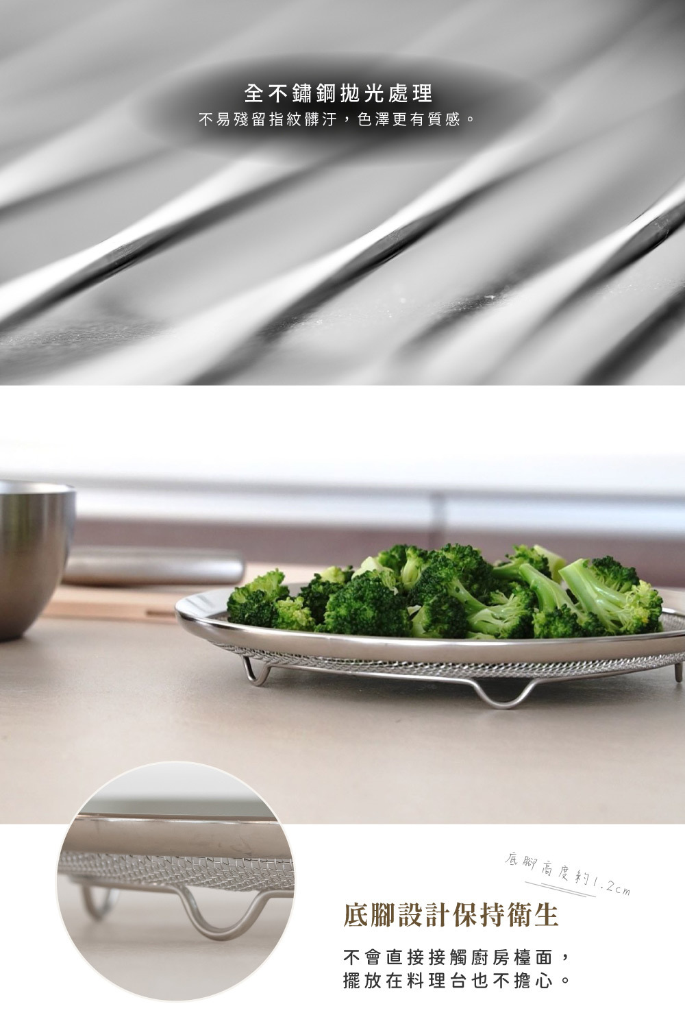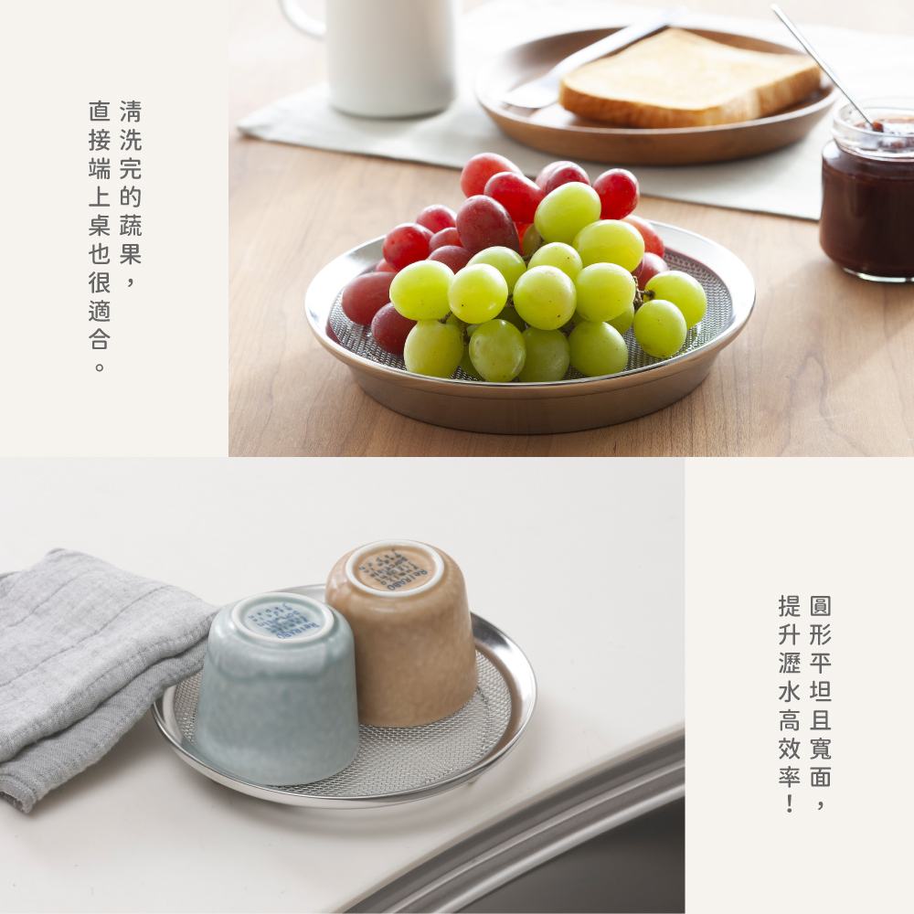可分散食材,高效率瀝水,可直接擺放在料理台安心使用。
