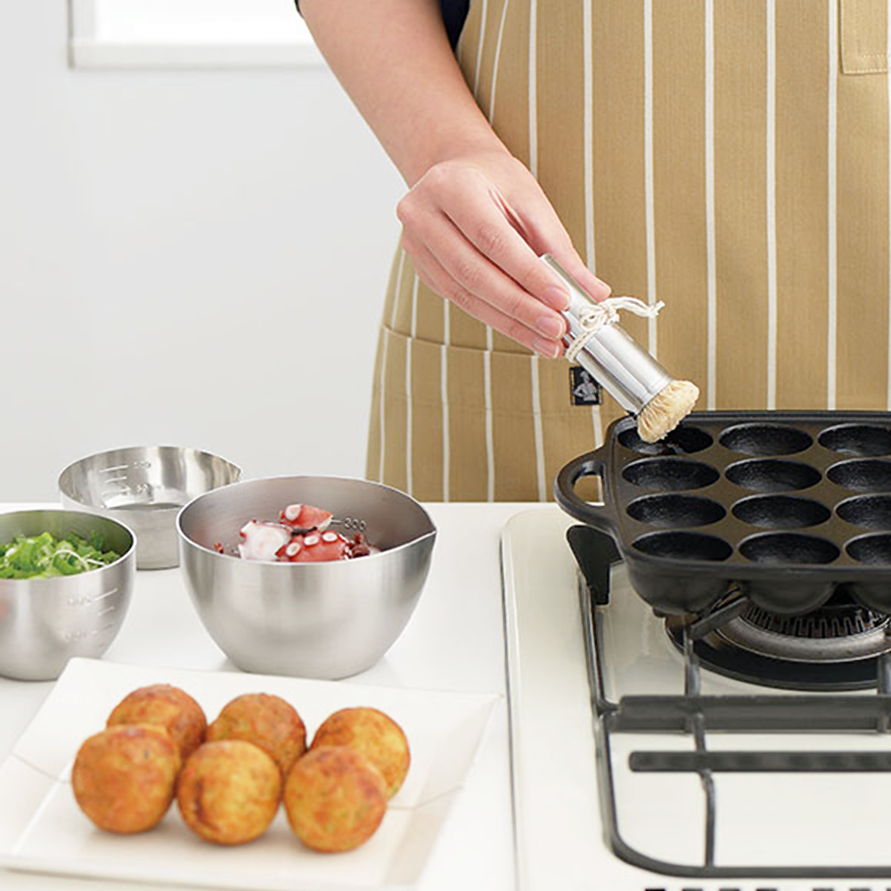 在平底鍋、章魚燒機、玉子燒鍋、蛋糕機上塗上油脂。可以均勻且薄而乾淨地塗抹油份。