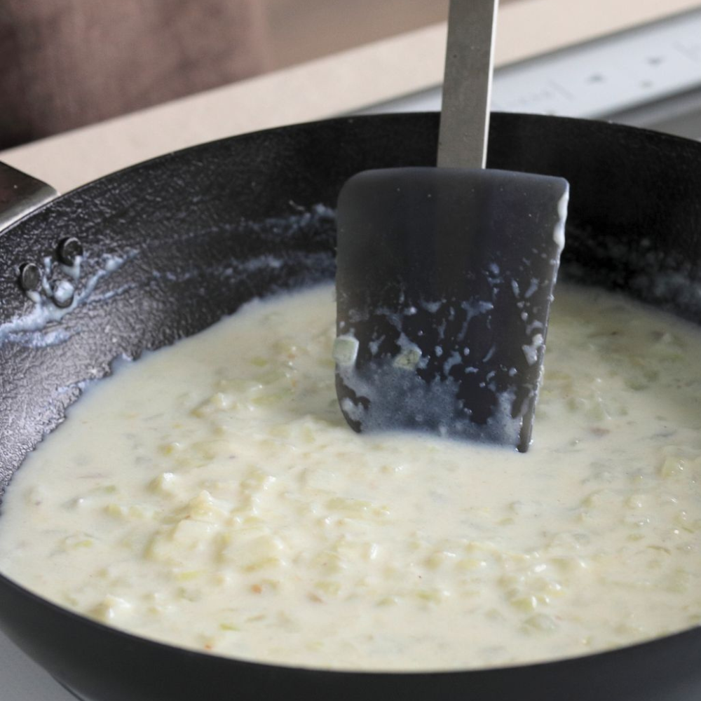 連炒菜或平底鍋調理也適用的萬用尺寸設計,抹刀處可拆下清洗。