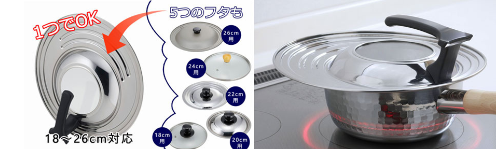 只需一個鍋蓋即可完美搭配多種尺寸,讓瓦斯爐周圍保持乾淨俐落。