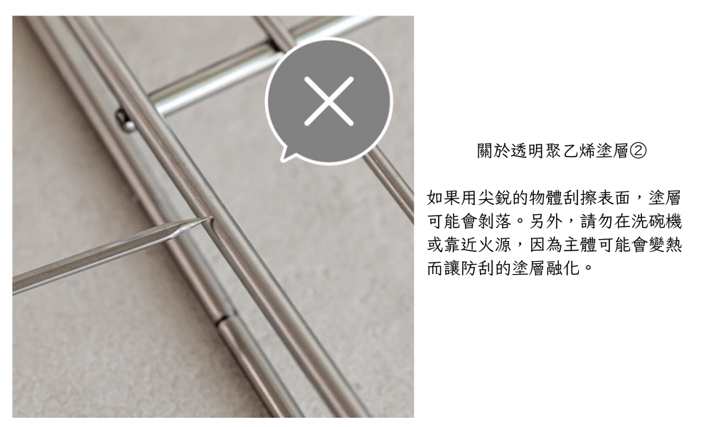 ■表面透明防護層加工,增加收納架彈力性不易傷餐盤。