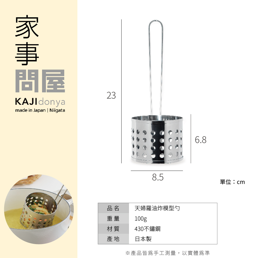 如使用家庭用油炸鍋,本油炸模型勺尺寸可炸出2~3個的炸什錦天婦羅。