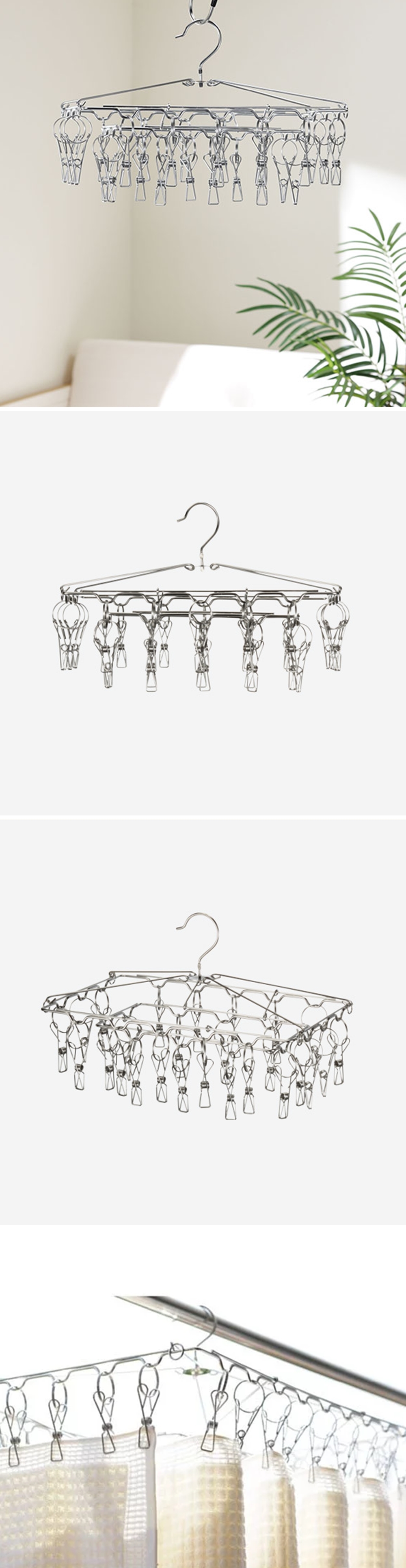 全不鏽鋼製造的衣架,兩段式設計可有效使衣服加速晾乾!