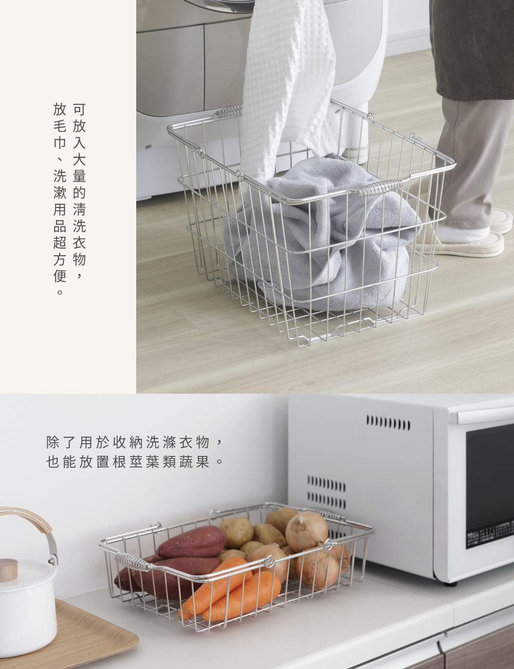 ■除了可收納洗滌衣物外,也可用於廚房收納根莖葉類的蔬果。