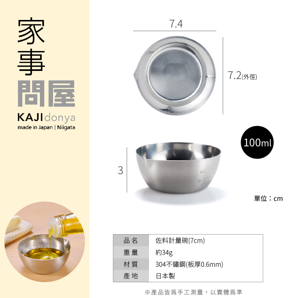 調理碗內外皆有容量標示,附有嘴口好倒出,適合用來分裝少量的調味料!