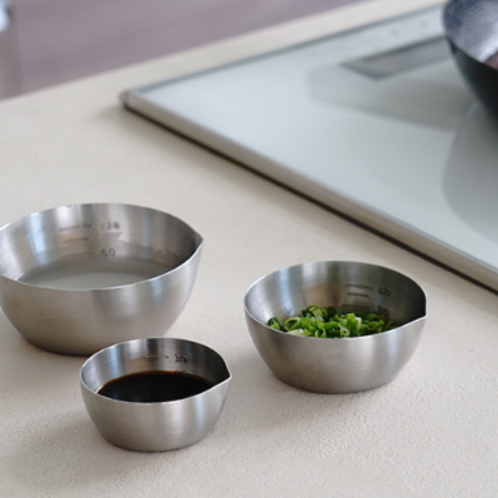 調理碗內外皆有容量標示,附有嘴口好倒出,適合用來分裝少量的調味料!