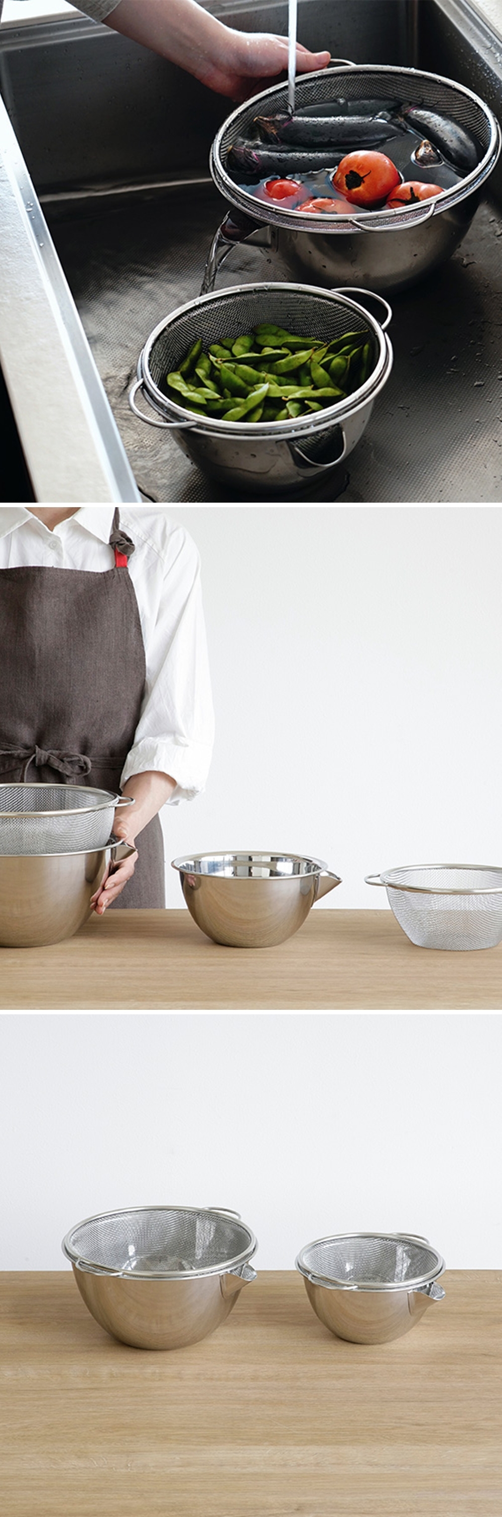 洗米・鹽漬・去澀・枝豆・麵條、蔬菜濾水等等多功能用途,輕鬆將多餘的水份從嘴口倒出。