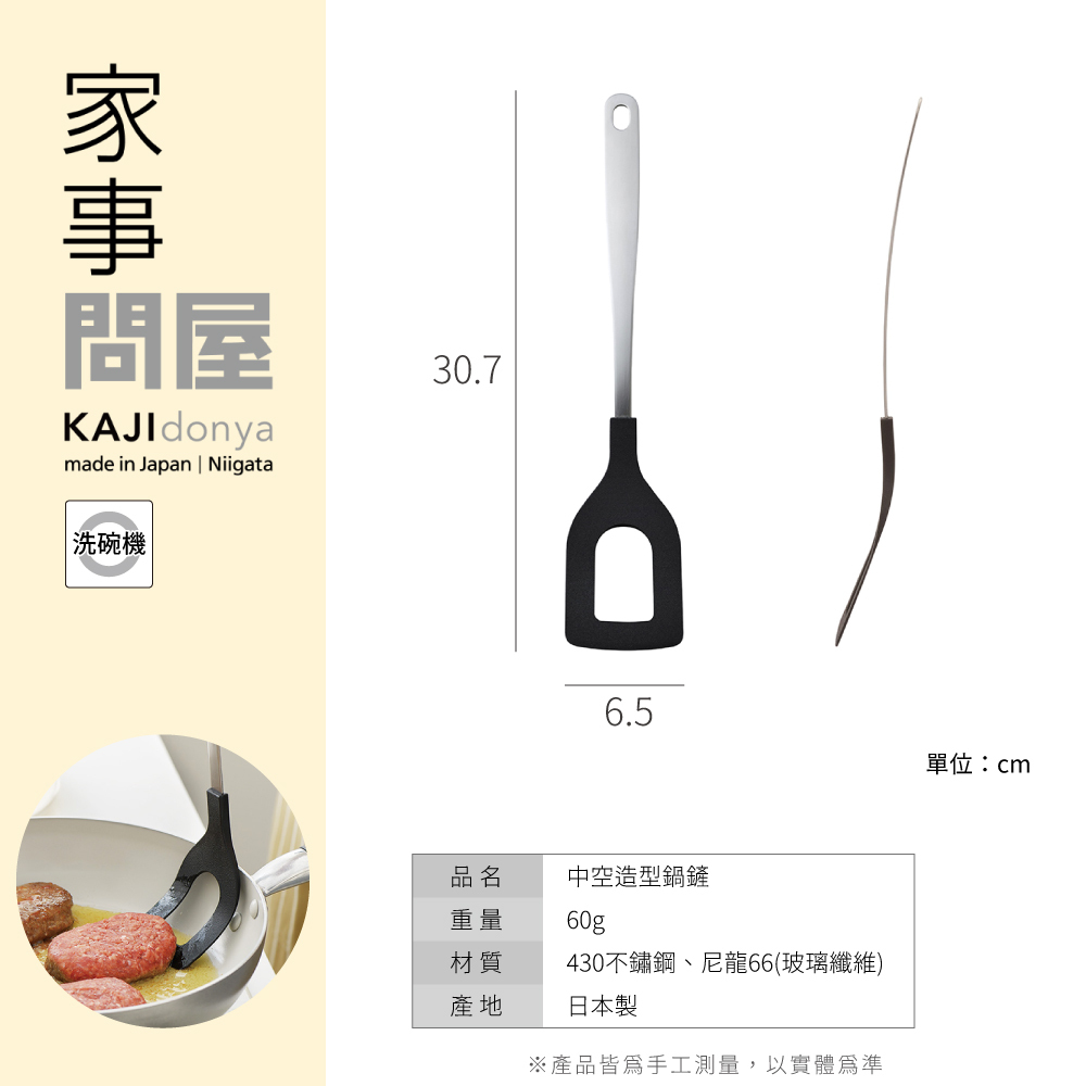 鏟面圓拱型中空設計,調理時可降低食材阻力,炒菜和攪拌都很方便。