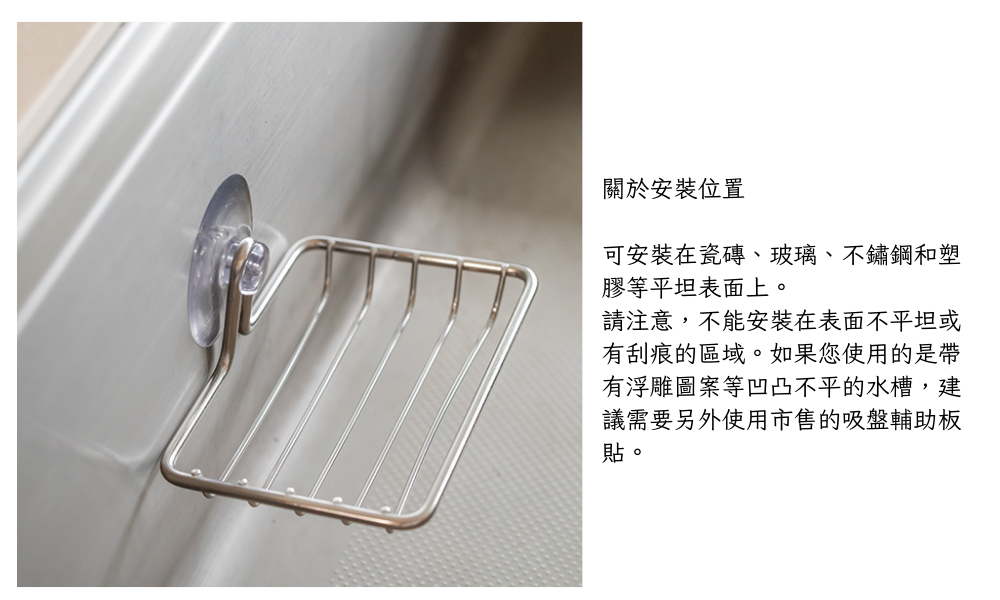 ■可吸附於平坦的表面,例如瓷磚、玻璃、不鏽鋼、塑膠。
