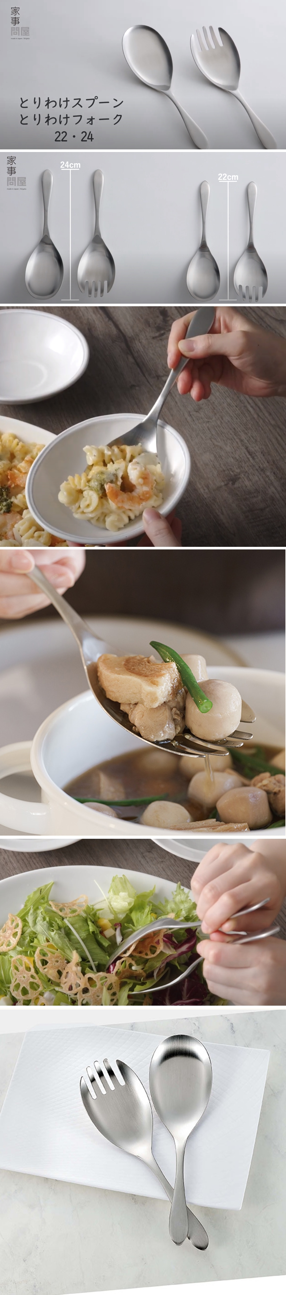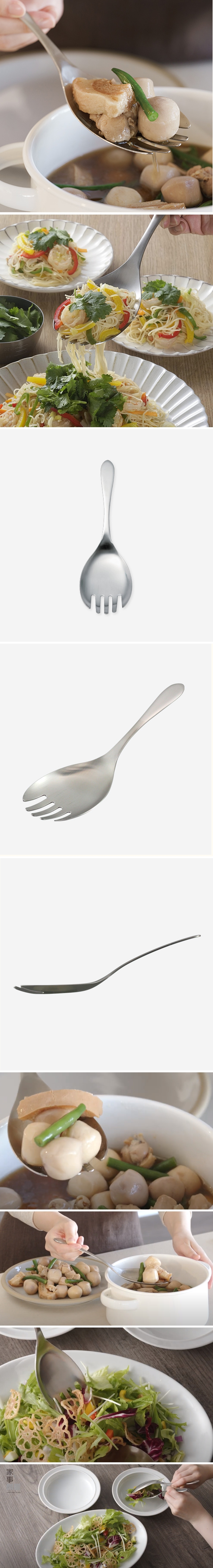 ■分菜叉採邊緣偏低且平面的設計,不用特別喬角度,從側面沿著菜盤即可一次盛裝大量的料理。