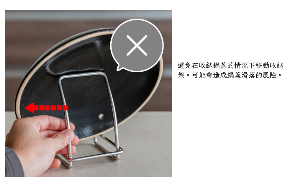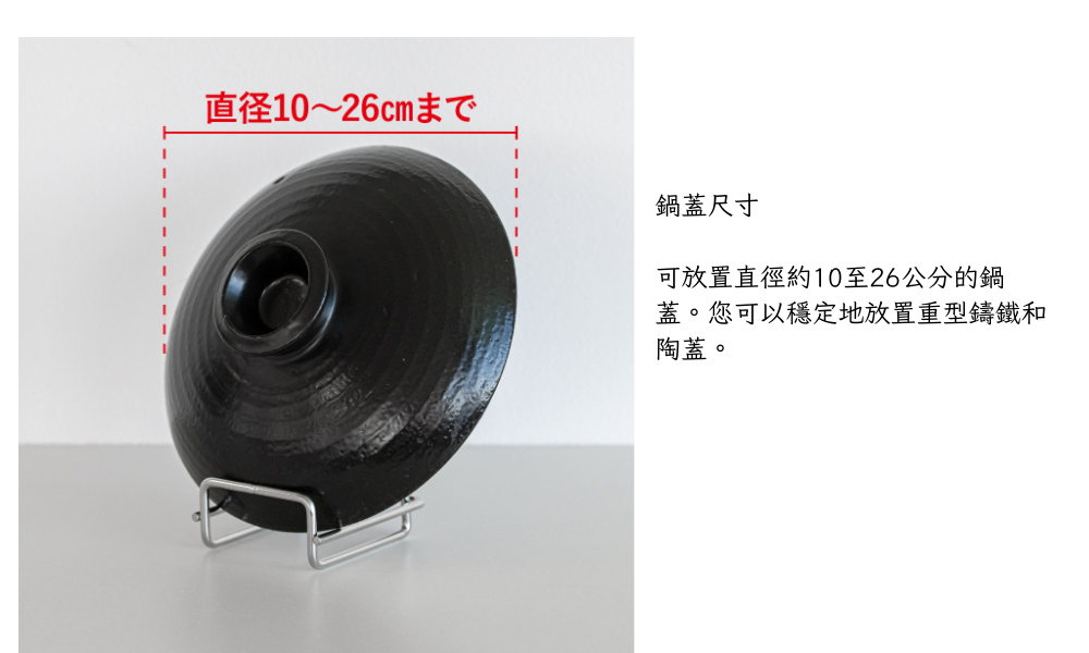 ■收納架外型可準確支撐鍋蓋上下2處,提升鍋蓋擺放穩固性不易翻倒。