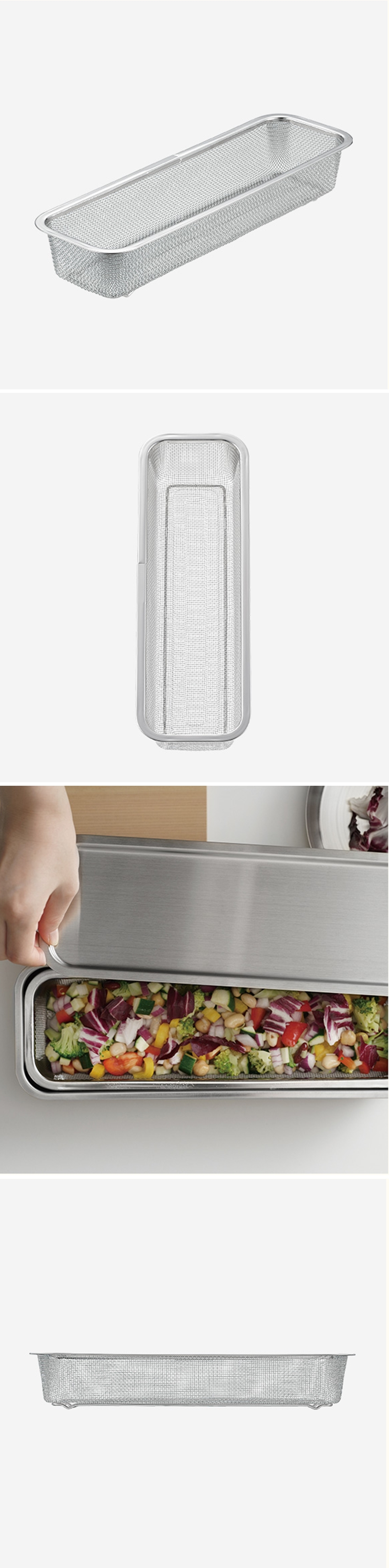 ■過濾網側面採平滑曲線設計好清洗,底部則設有腳柱減少過濾網與水槽或料理檯面接觸,保持高度衛生感。