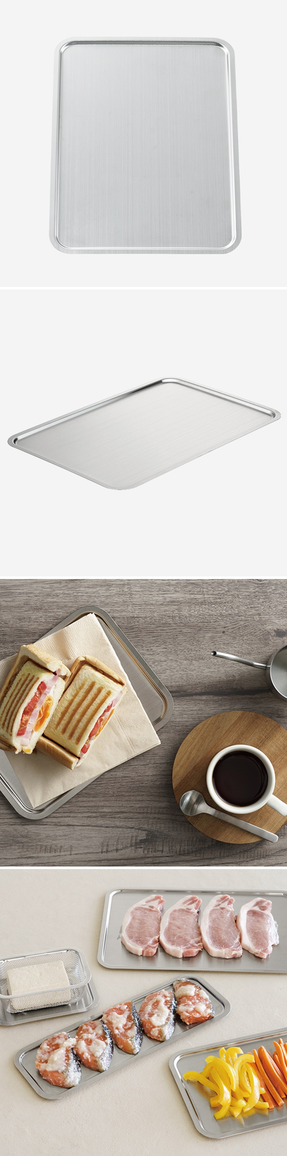 包水餃、盛裝炸物、醃肉、做甜點烘焙、備料等都可以使用的全不鏽鋼製調理盤。