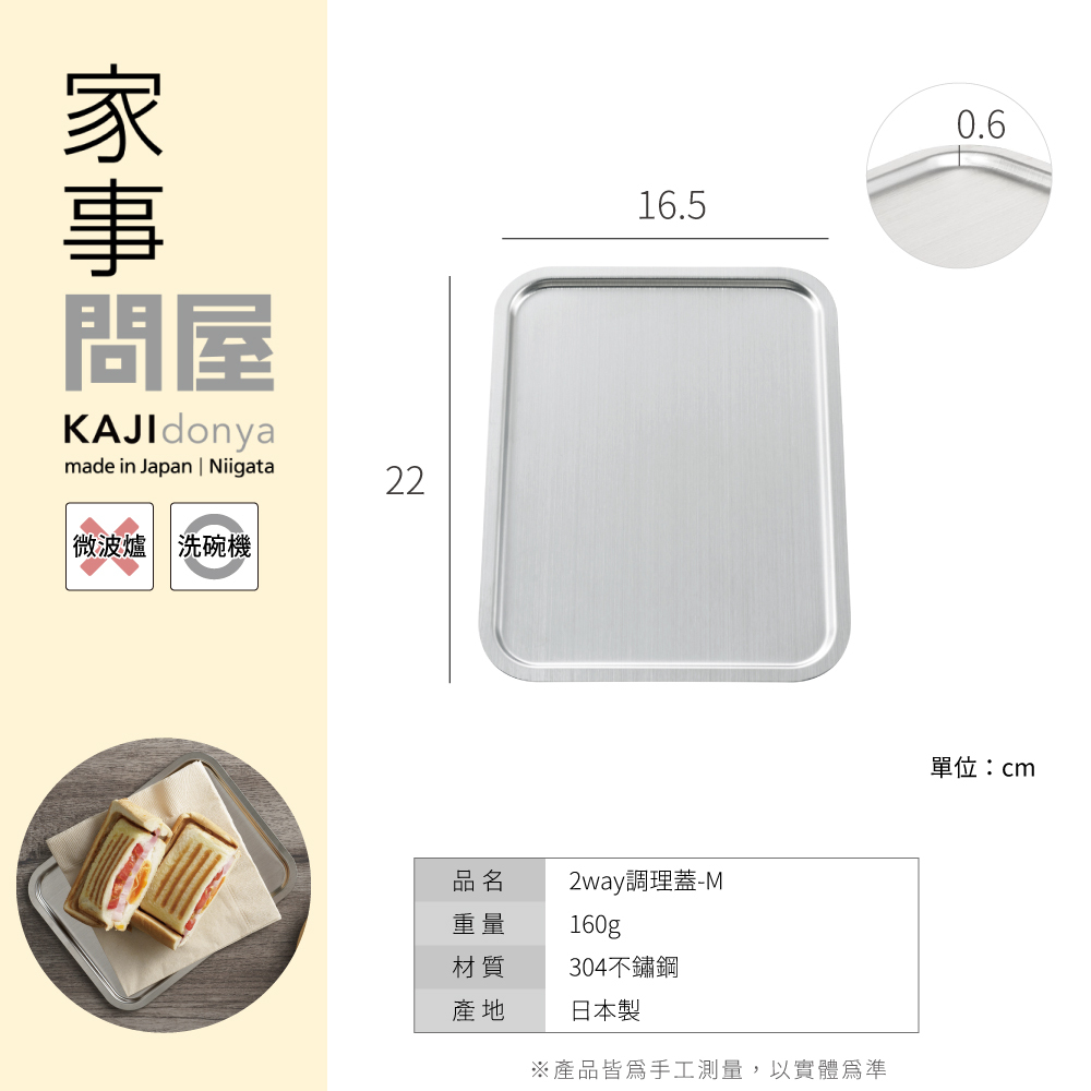 ■304全不鏽鋼製造,0.6cm的薄度當調理蓋‧盤皆都很萬用。